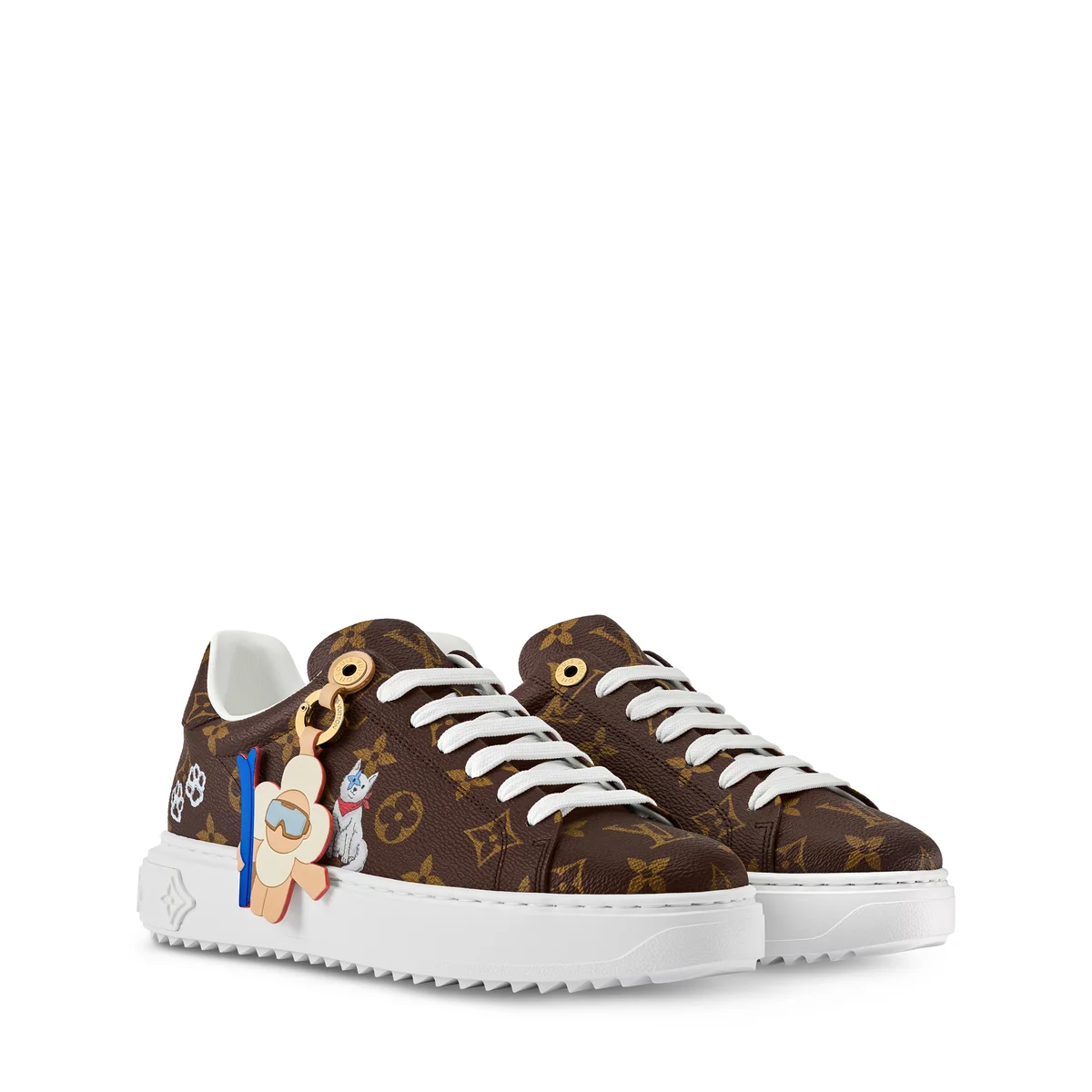 冬のテーマで再解釈された「タイムアウト スニーカー」は、メゾンのマスコットや雪のモチーフをプリントし、スキー板を手にした「ヴィヴィエンヌ」のチャームを添えた一足。軽量のEVAアウトソールにはモノグラム・フラワーが刻まれ、スポーティーな中にエレガンスを感じさせるデザインに仕上がっている。履くだけでシーズンムードが高まる、冬のコーディネートの主役になりそう。