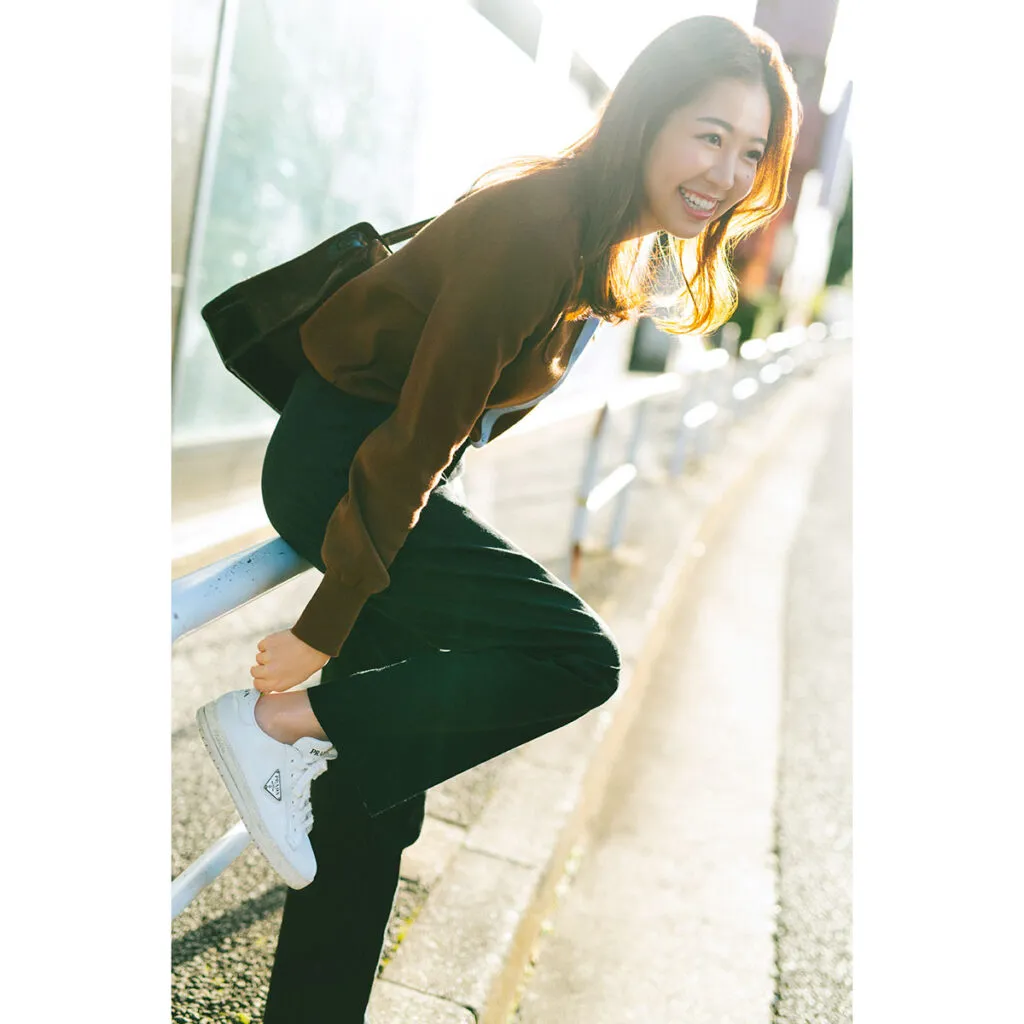 代理店の大きなお仕事の1つでもあるCM撮影では、足音が出なくて動きやすいスニーカーの着用が暗黙のルール。とはいえ、現場のTPOを守りながらオシャレと実用性を両立できるアイテムを選ぶのは意外と難しいんです。私は服装にこだわりを持っていたいので、お堅めな現場だったとしても少しでもファッションを楽しみたい――そこで愛用しているのがミニマルなデザインが素敵なPRADAの白スニーカー。長めの丈のパンツをはいたら隠れて見えないくらいの、さりげないロゴのデザインが、シンプルで気に入っています。自分だけにわかる自己主張が「私、今日もオシャレしてる!」と気持ちを上げてくれる、現場に欠かせない相棒です!