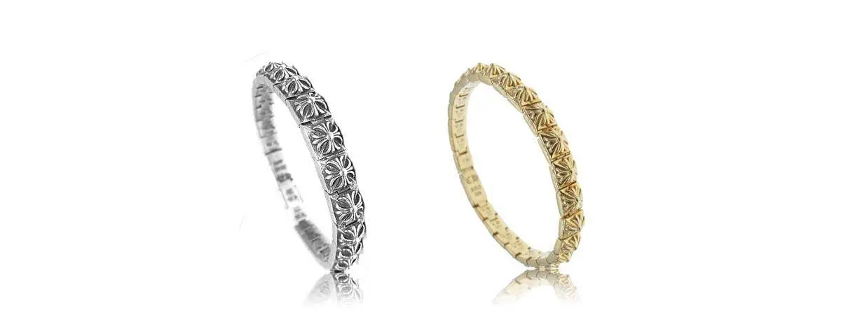 クロムハーツのブレスレット選びにおいて、素材はその印象や価値を大きく左右する重要な要素です。中でも特に人気が高いのが、ブランドの原点ともいえる「シルバー925」と、圧倒的な高級感を誇る「22Kゴールド」。それぞれの魅力と違いを理解することで、自分にとって最適な一本が見えてきます。