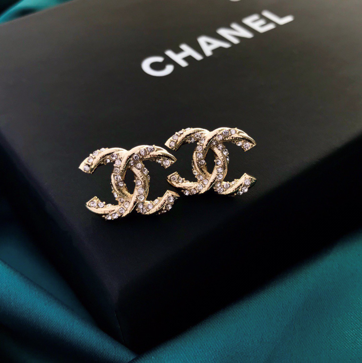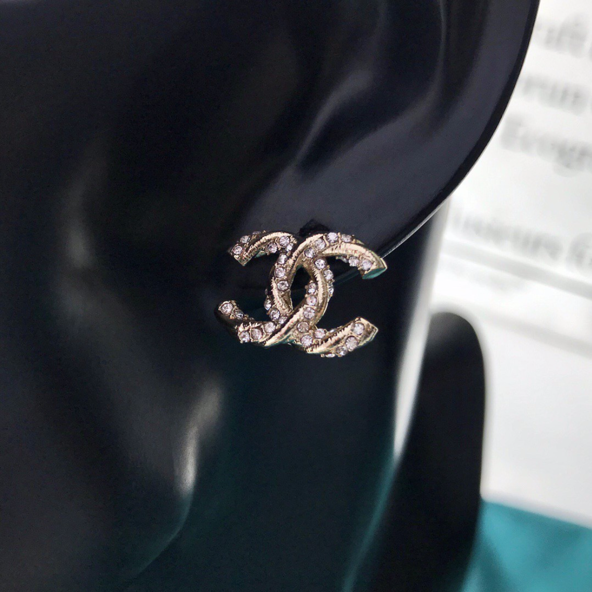 【国内発送/直営店】メタルダブルCダイヤモンドピアス