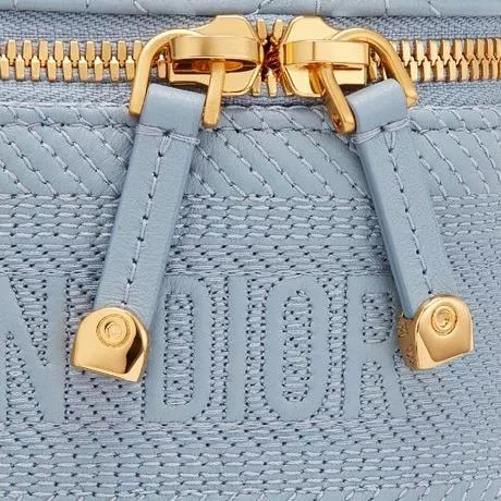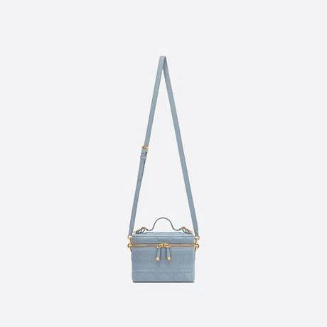 「DiorTravel (ディオール トラベル)」ヴァニティが、ミニサイズで登場。しなやかなクラウドブルーのラムスキンを使用し、「カナージュ」ステッチとエンボス加工の“Christian Dior”シグネチャー入りバンドをあしらいました。ジップクロージャーで開閉するメインコンパートメントには、スマートフォンやウォレット、AirPods用ケース、ノートブックなどを収納できます。普段使いに最適なこのヴァニティは、トップハンドルを使った手提げスタイルとしても、取り外し可能なショルダーストラップでショルダーやクロスボディバッグとしてもお使いいただけます。