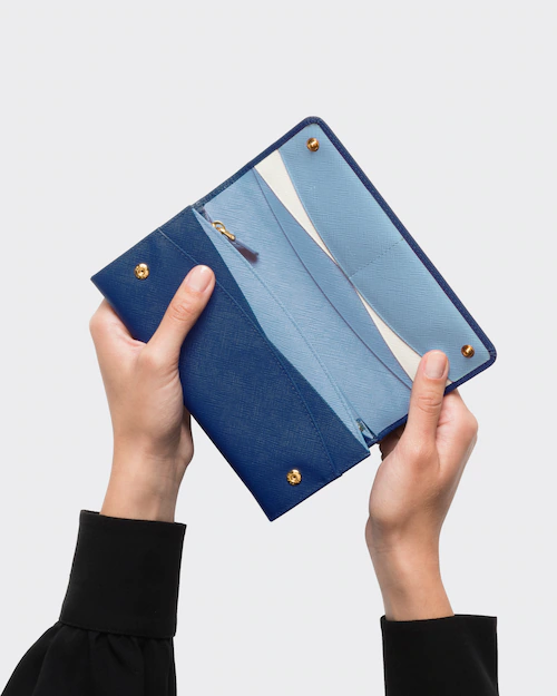 ゴールド仕上げのレタリングロゴをあしらい、内側に施したマルチカラーのレザーがエレガントな魅力を引き立てる「サフィアーノ」レザー(牛革)の長財布。内側に複数のコンパートメント、小銭入れ、取り外し可能なバッジホルダーを備えた、使い勝手に優れたアイテム。