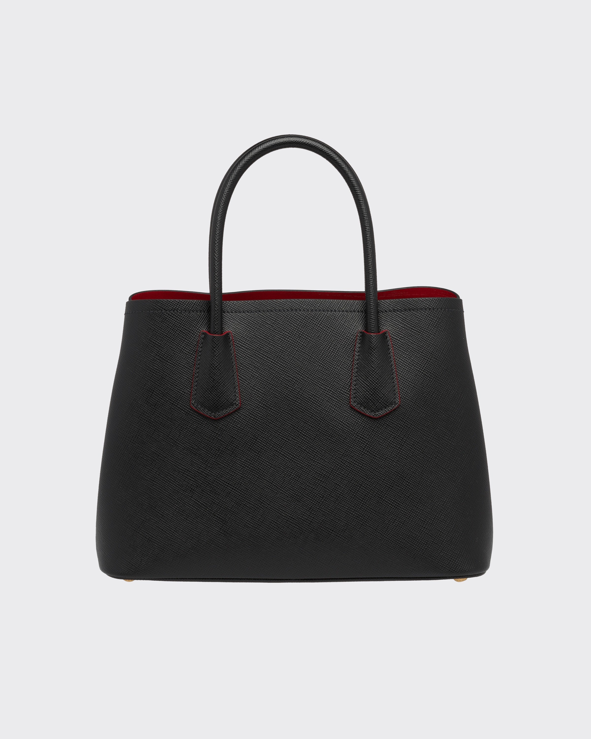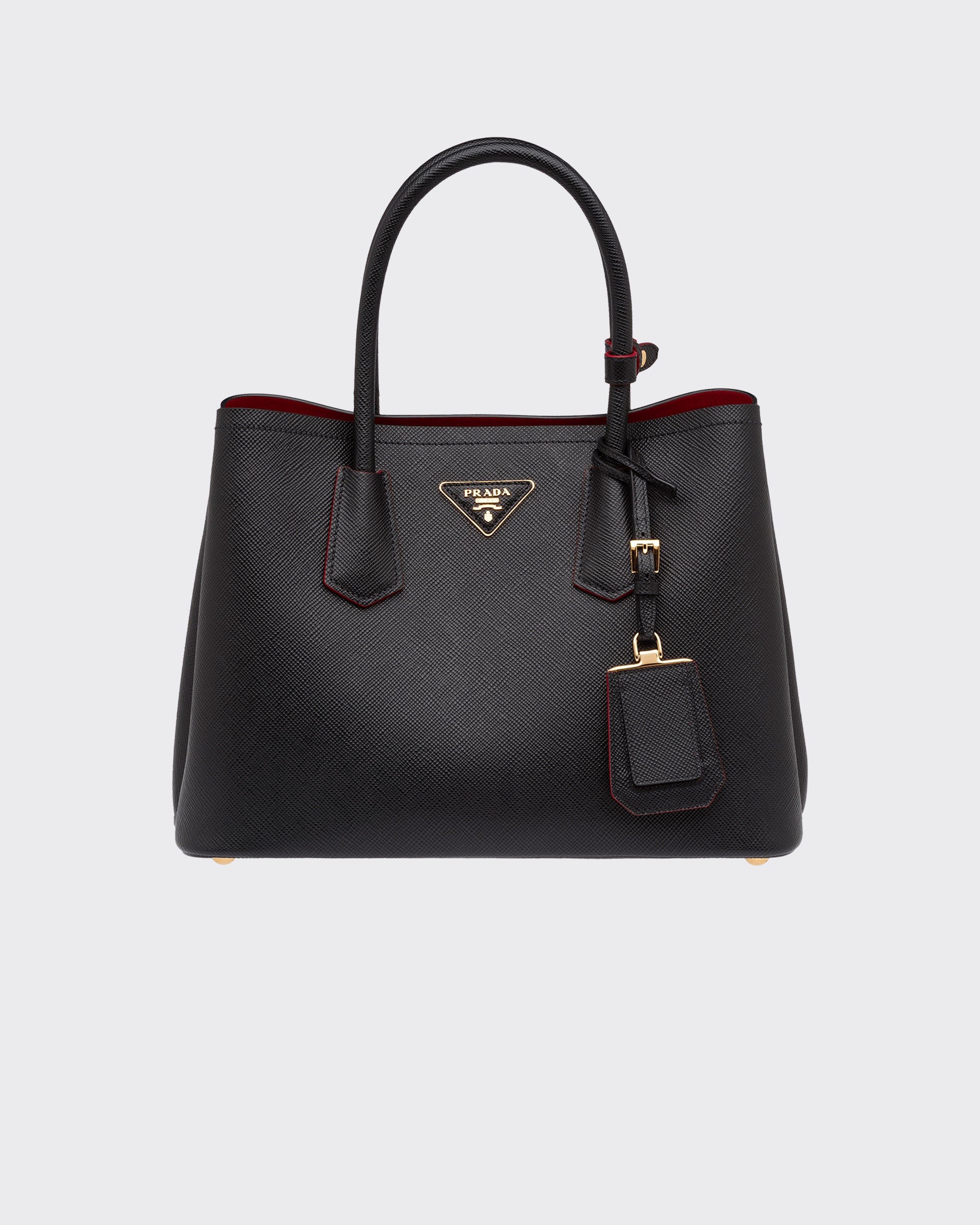 プラダを代表する型押し加工を施した「サフィアーノ」カーフレザー(牛革)を使用したスモールサイズの​プラダ ドゥーブレバッグ。 2つに分かれた収納部分と内ポケットを1個備えたアイテム。メタルパーツとアイコニックなプラダのロゴをアクセントにエレガントな魅力を引き立てます。レザーのダブルハンドル、取り外し可能なショルダーストラップ、ナッパ(羊革)のライニングをほどこしています。