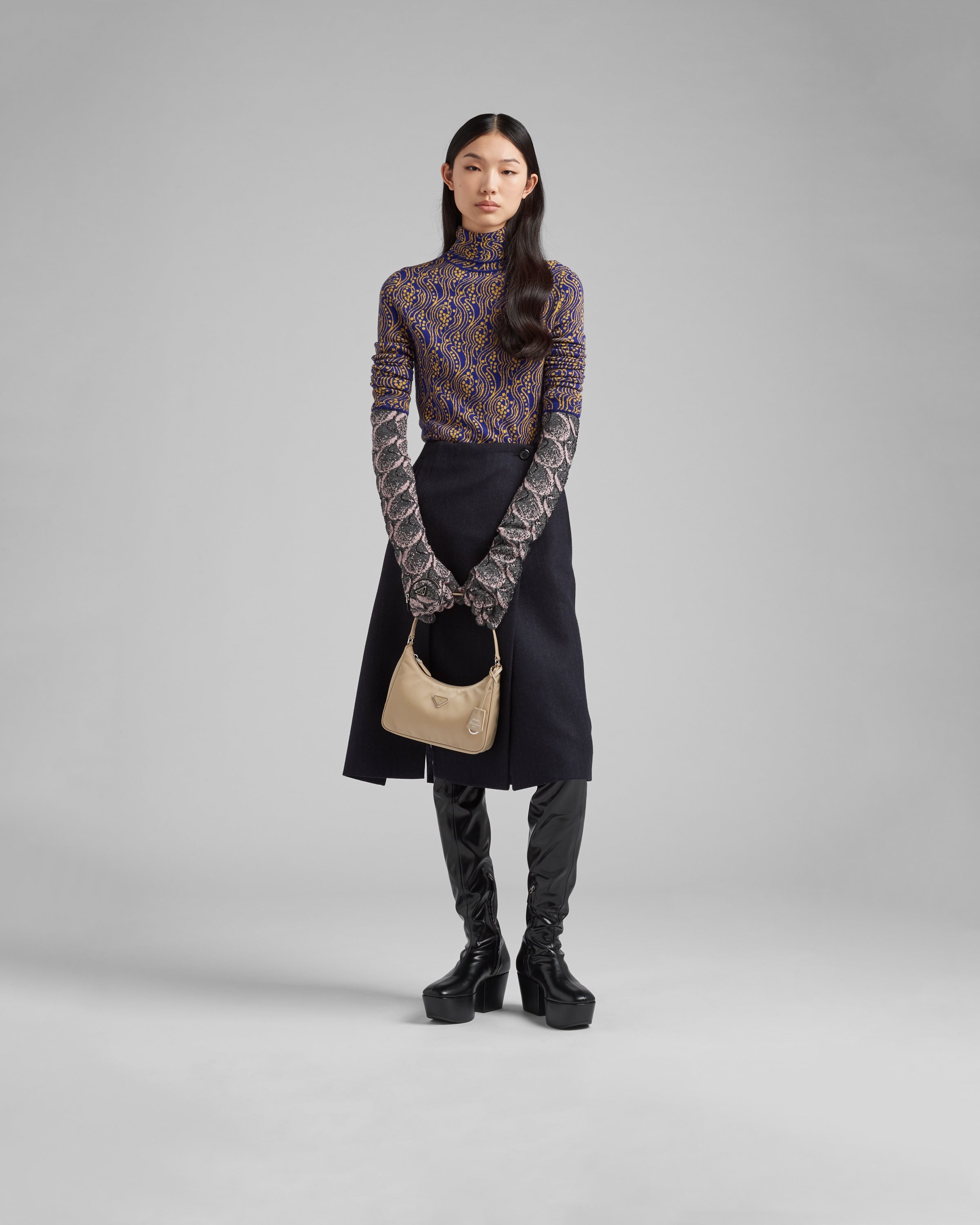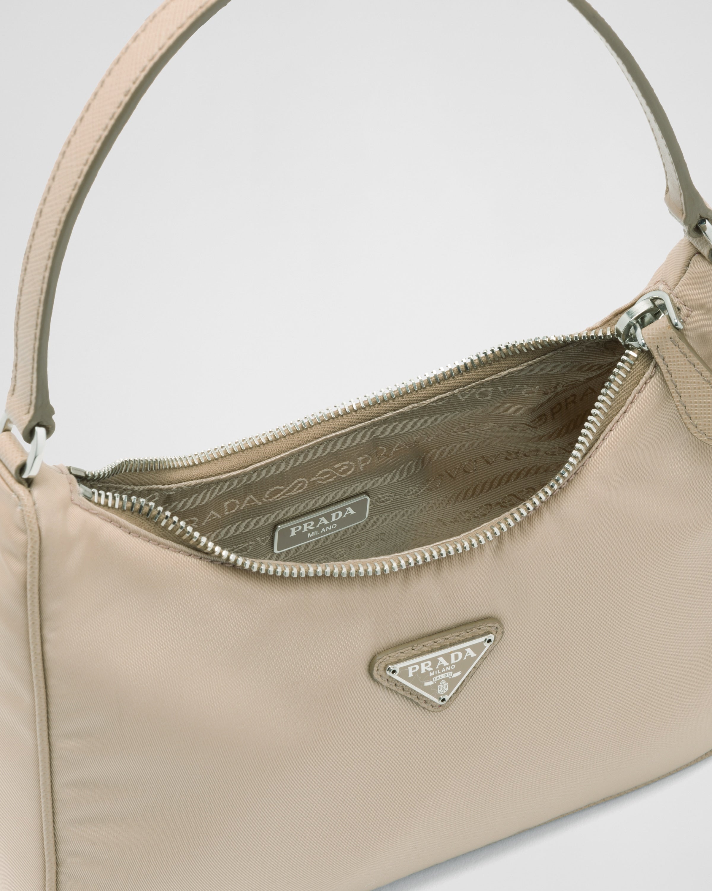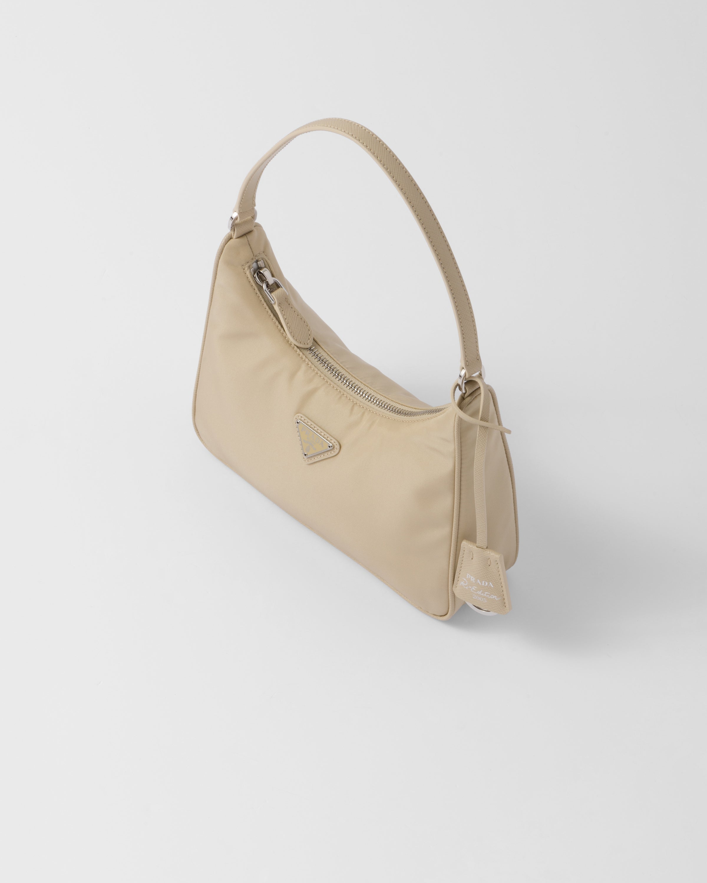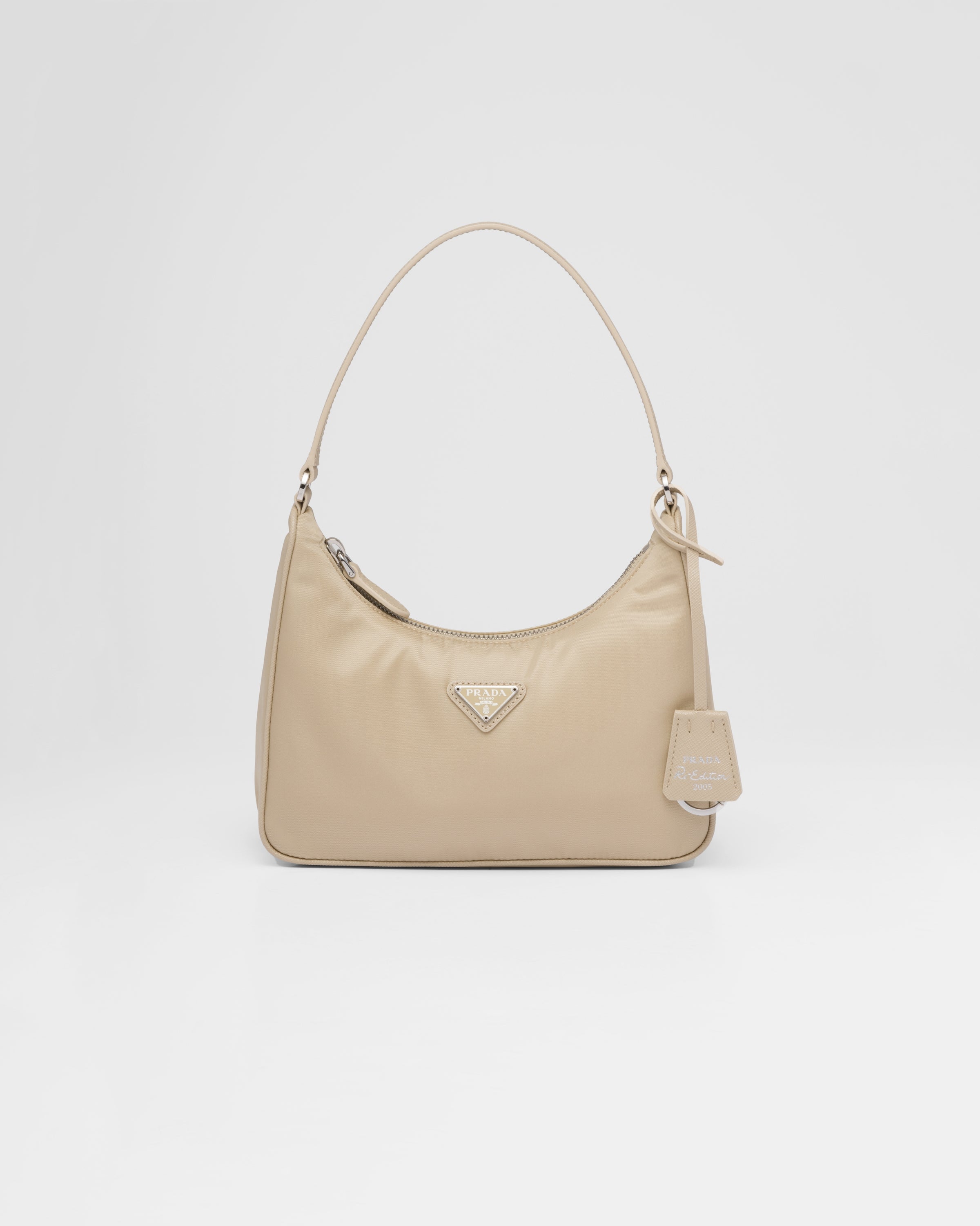 アイコニックなミニホーボーバッグにインスピレーションを得たプラダRe-Edition 2005 ショルダーバッグ。海で回収されたプラスチック素材を再利用、浄化して作られた再生ナイロン糸のRe Nylonを使用しています。アイコニックな「サフィアーノ」レザー(牛革)のトリムを施し、女性的な美しさを引き立てるデザインと、使い勝手に優れたミニバッグ。モダンな印象の異素材ミックスがアクセントになっています。