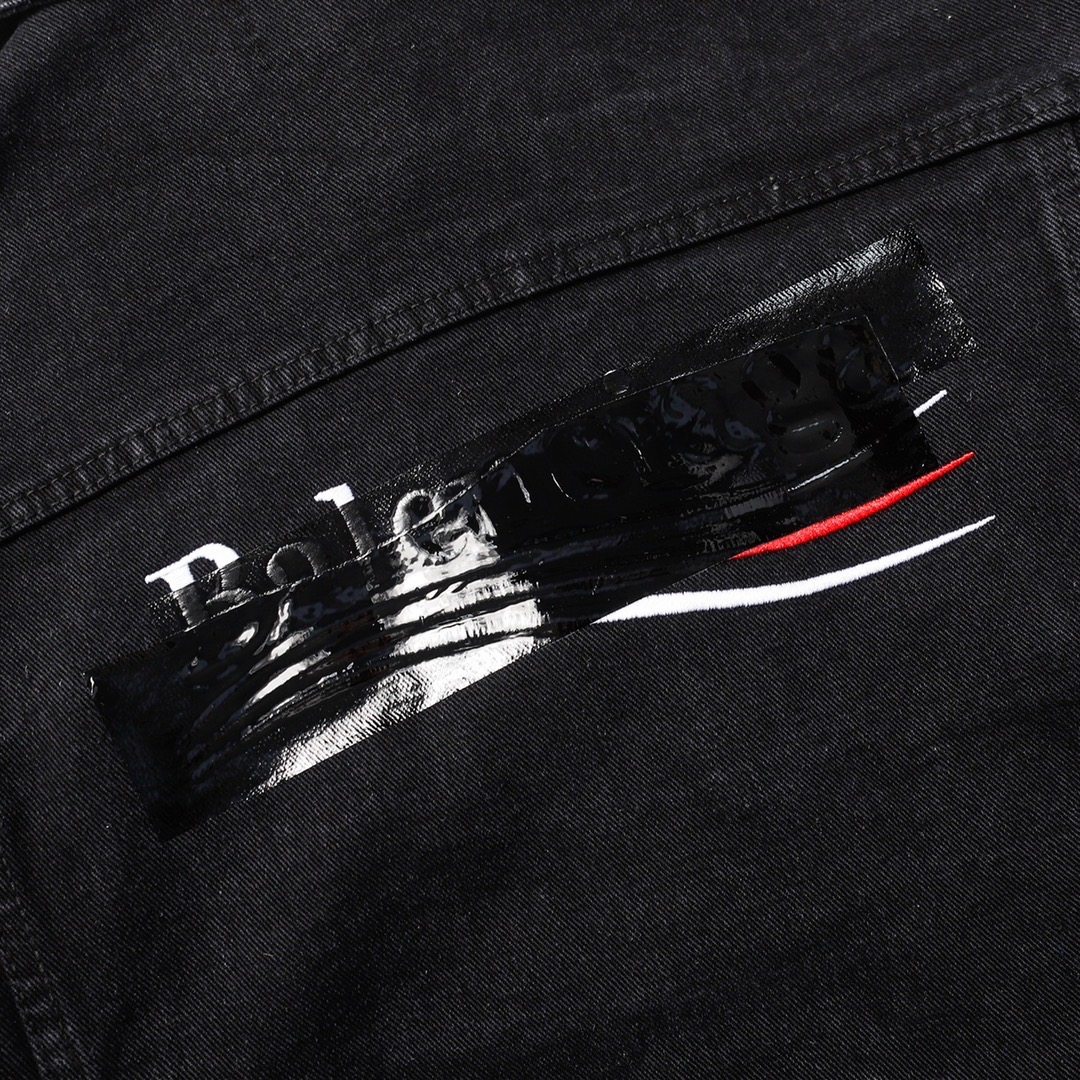 Balenciaga 23年新刺繍ラミネート文字カデニムジャケット ユニセックス。このジャケットは、バレンシアガの創業者であるクリストバル・バレンシアガの創造性と独自のデザインを受け継いだ最新作です。