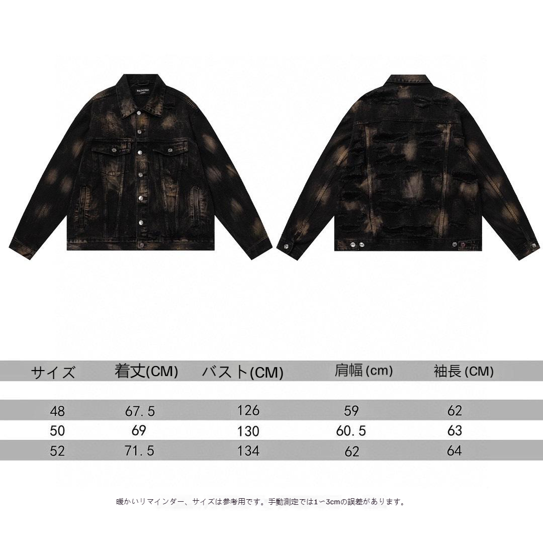 Balenciagaの水洗復古破穴デニムジャケット。その名の通り、ジャケット全体に独特な水洗加工と破れた風合いが施されており、ヴィンテージ感漂うデザインが魅力です。48, 50, 52の3サイズ展開なので、あなたにピッタリのサイズが見つかることでしょう。