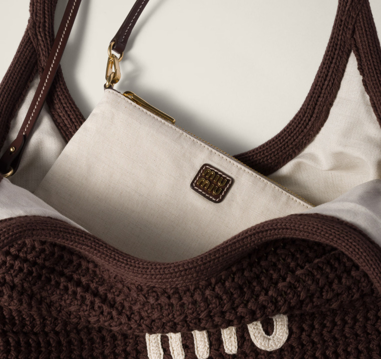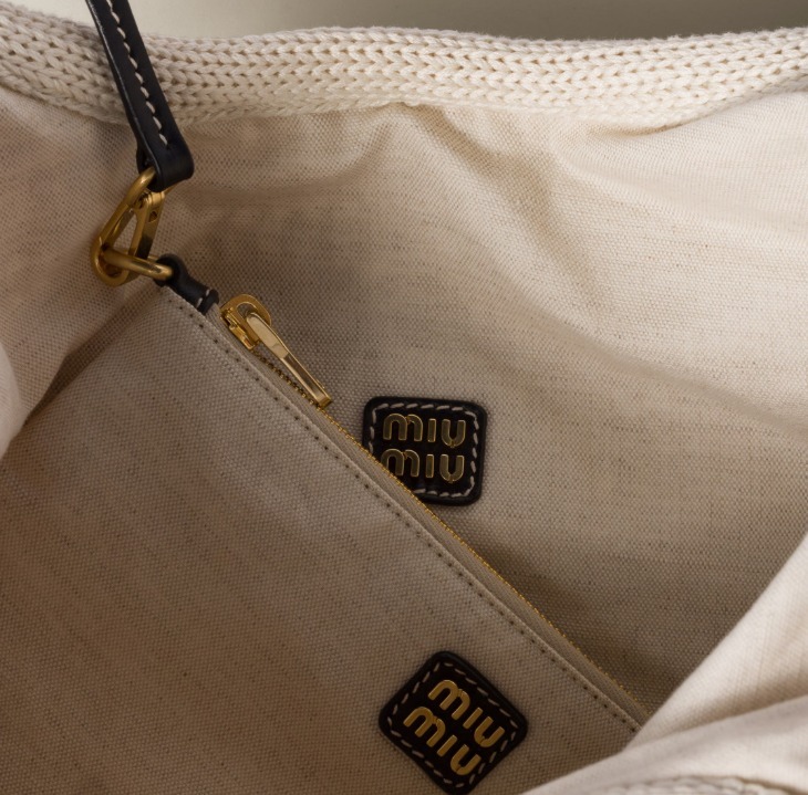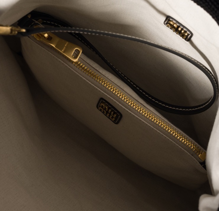 ・ファブリックの内張り、取り外し可能なMIU MIU ロゴプリント入りポーチ付
