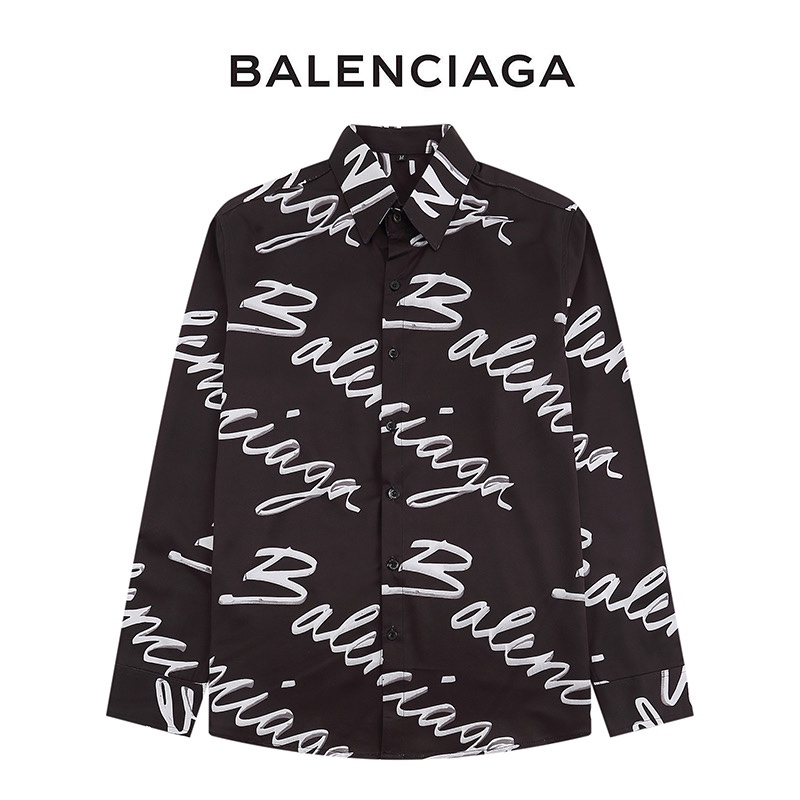 BALENCIAGAアルファベットプリントブラック長袖シャツM-3 XL