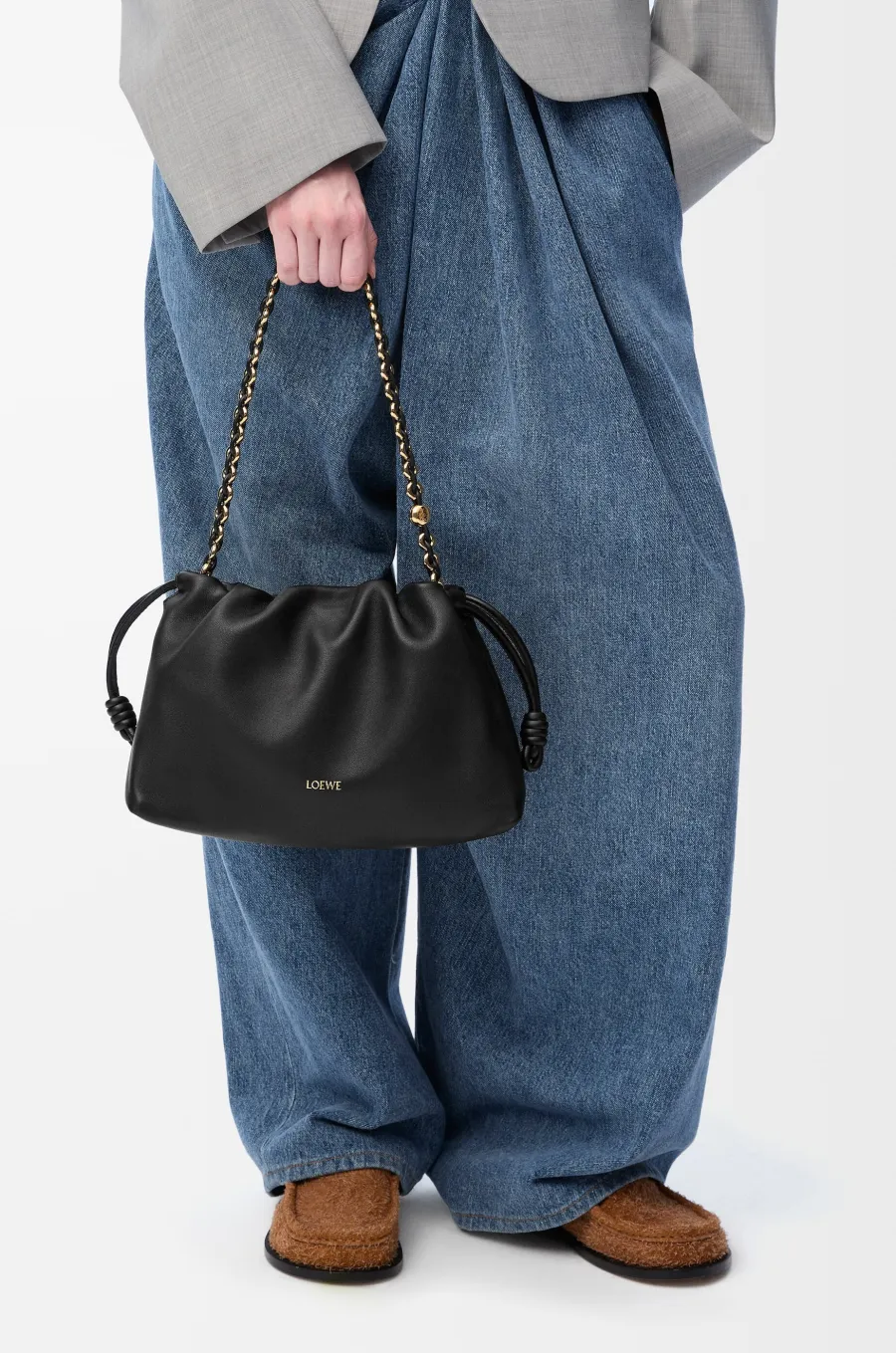 柔らかにたわむシルエットに特徴的なドーナツチェーンをあしらったニューアイコンバッグ「FLAMENCO PURSE(フラメンコパース)」。ミニマルなデザインにフロントのエンボスロゴが品のあるアクセントを添えています。マグネットクロージャー開閉式のコンパートメントにはロングウォレットやスマートフォンなどのデイリーグッズを収納可能。取り外しができるチェーンと調節可能なレザーストラップで、ハンドル・ショルダー・クラッチスタイルと多彩な持ち方でお愉しみいただけます。カジュアルからドレスシーンまで活躍するモダンな雰囲気も魅力的。コレクションの仲間入りにいかがでしょうか。
