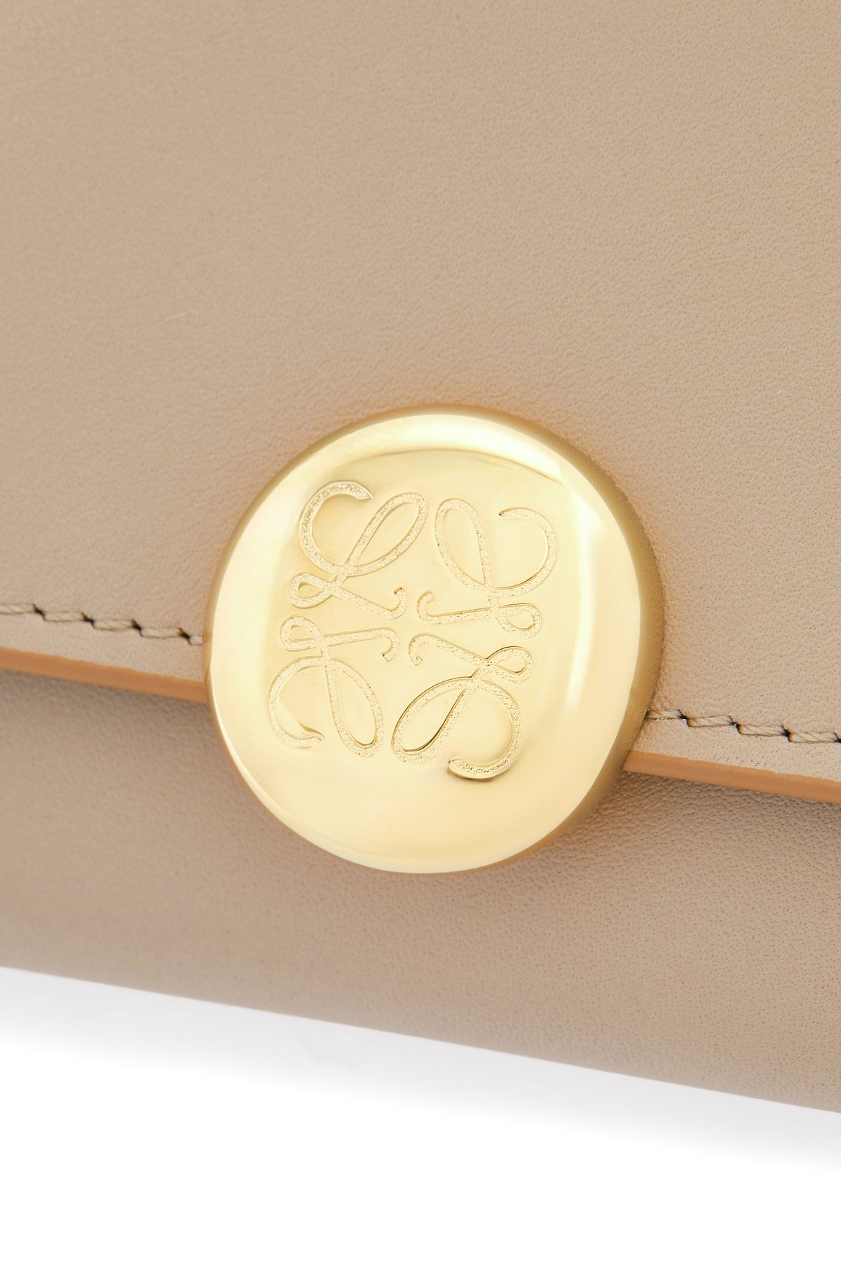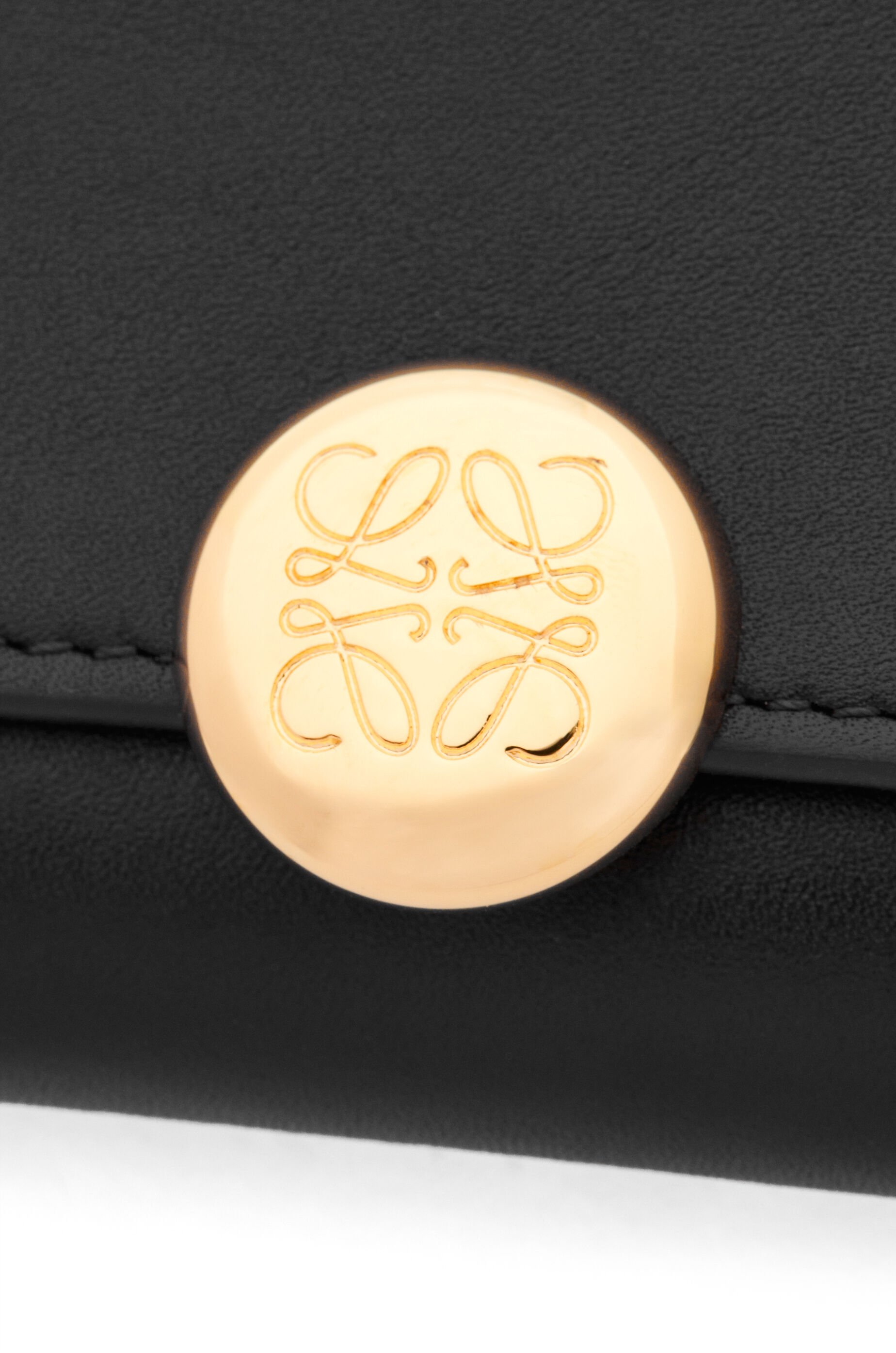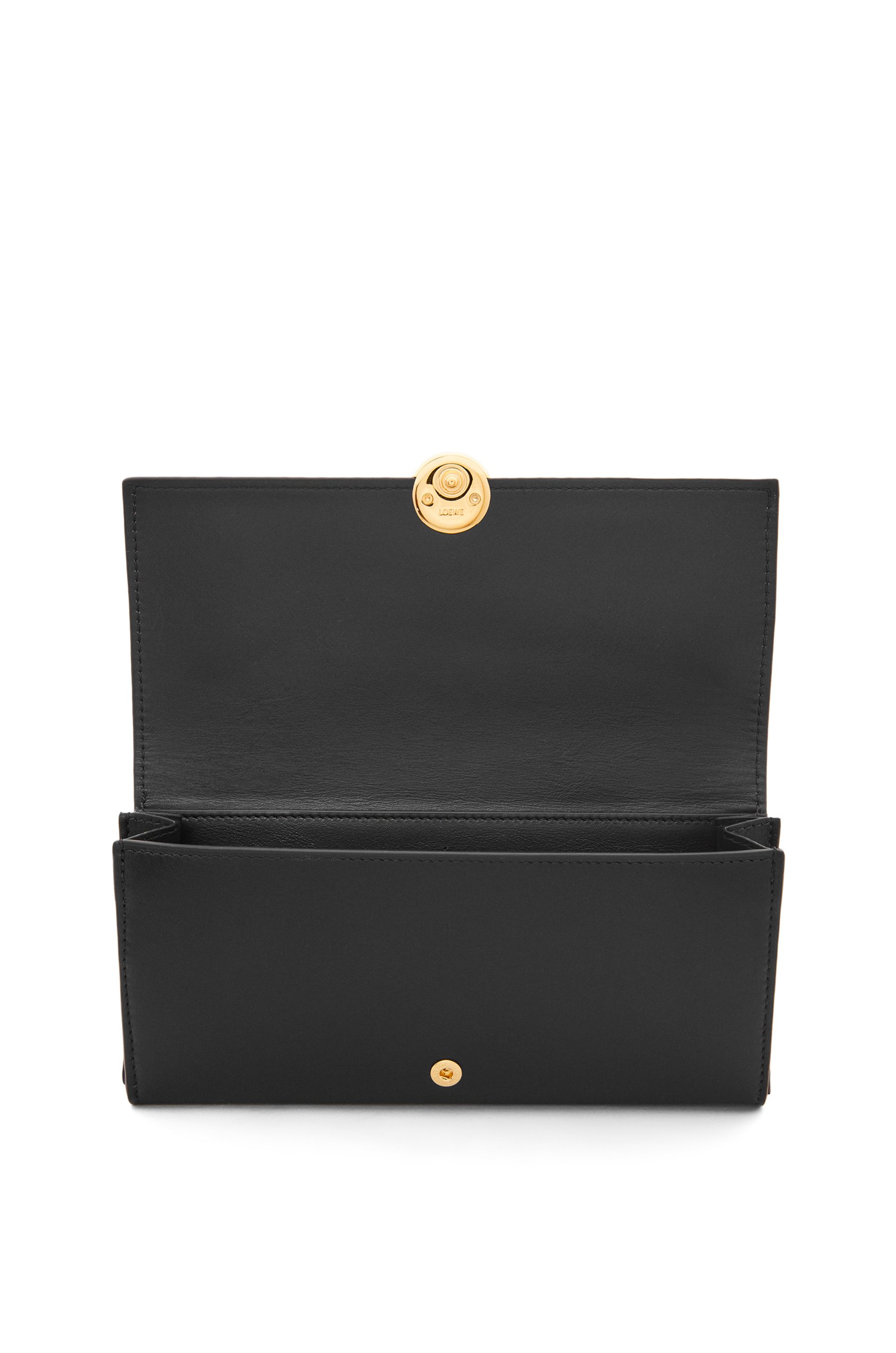 シャイニーナパカーフスキンを採用したコンティネンタルウォレット。シグネチャーのアナグラムぺブルのクロージャーがあしらわれています