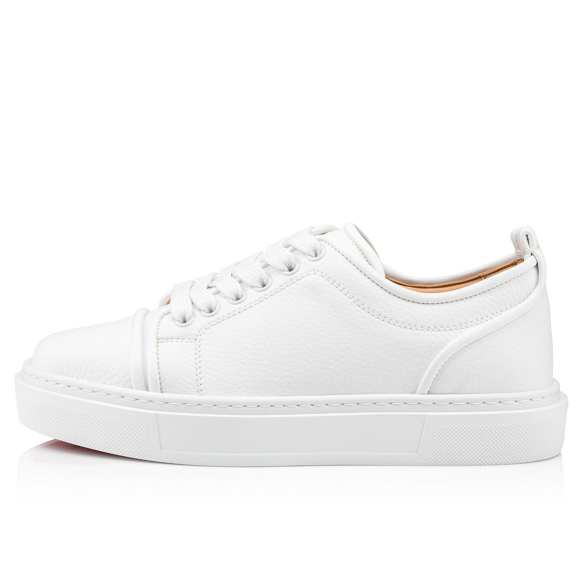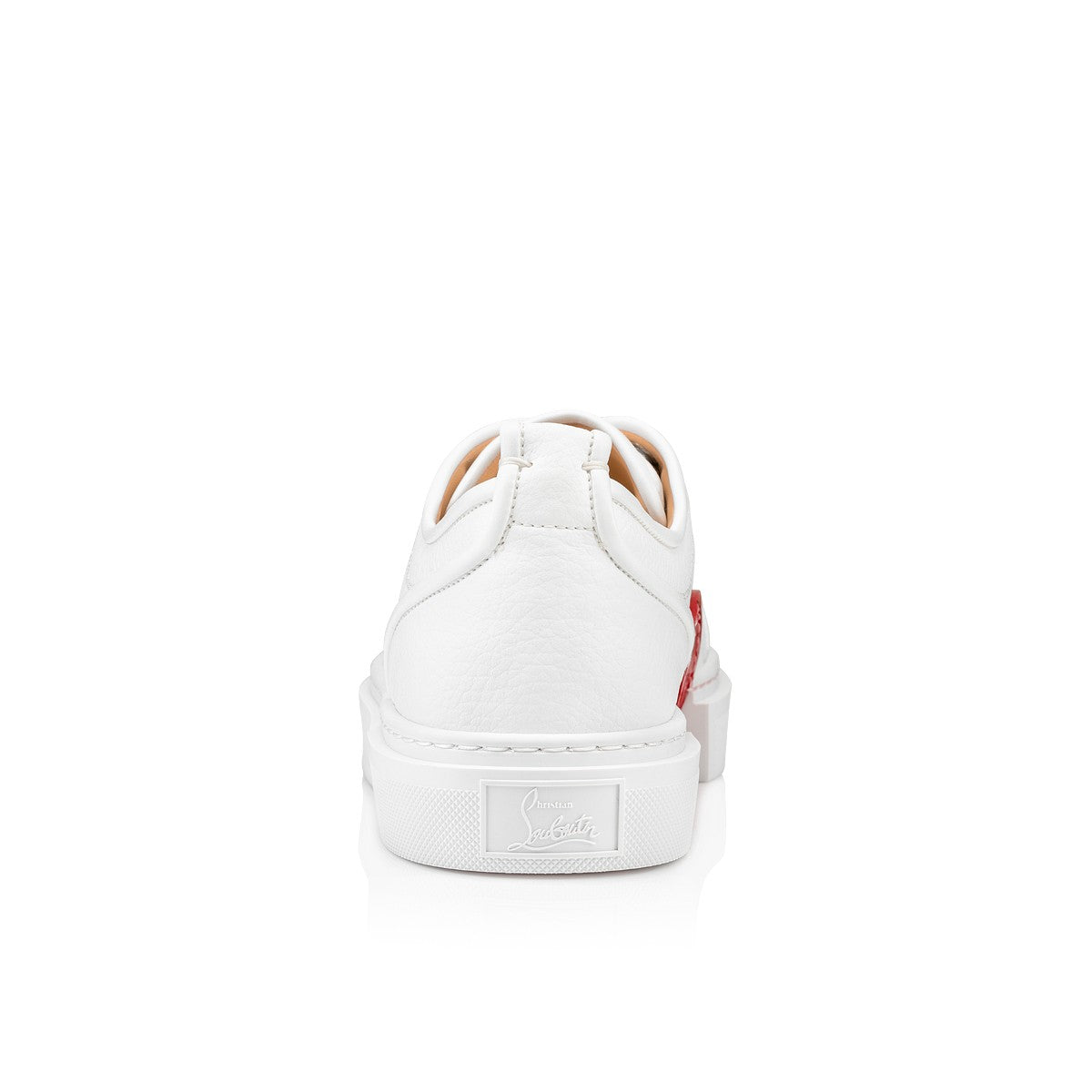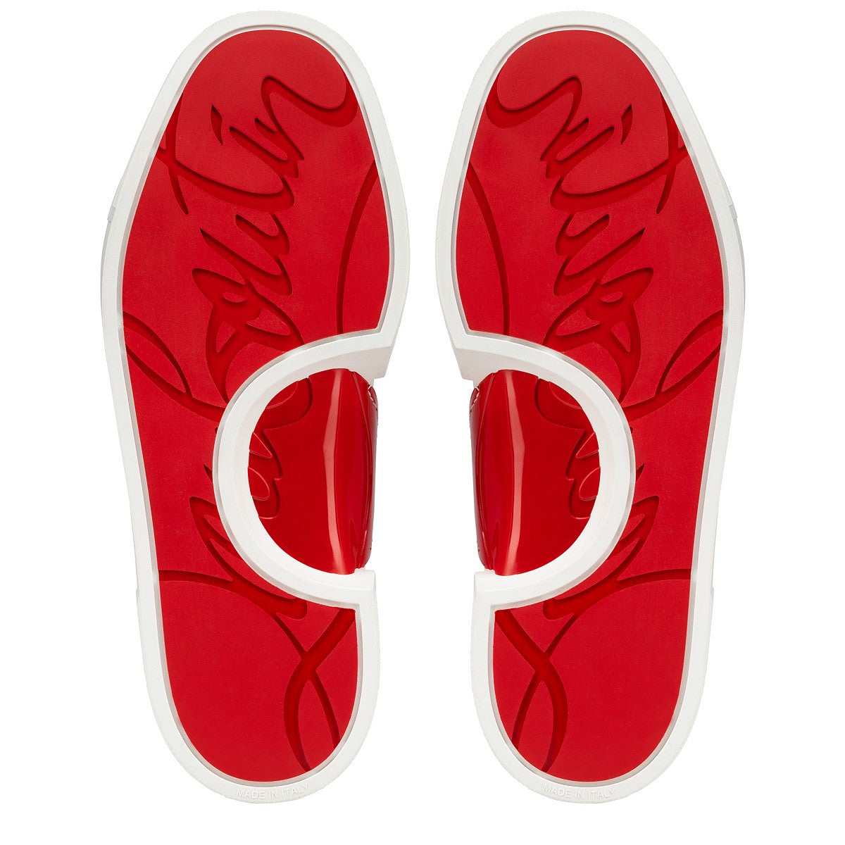 Showcasing the Maison Christian Louboutin's creativity, the Adolon Woman low-top sneaker is highly original. This daring model sits on a thick Bianco white rubber sole and features an eye-catching Loubi red lacquered TPU insert and notched detail on the inside, recalling our iconic leather sole. A bold contrast against the delicate grained Noleather, made from different recycled materials, and signature topstitching, combining a post-punk aesthetic with futuristic chic.