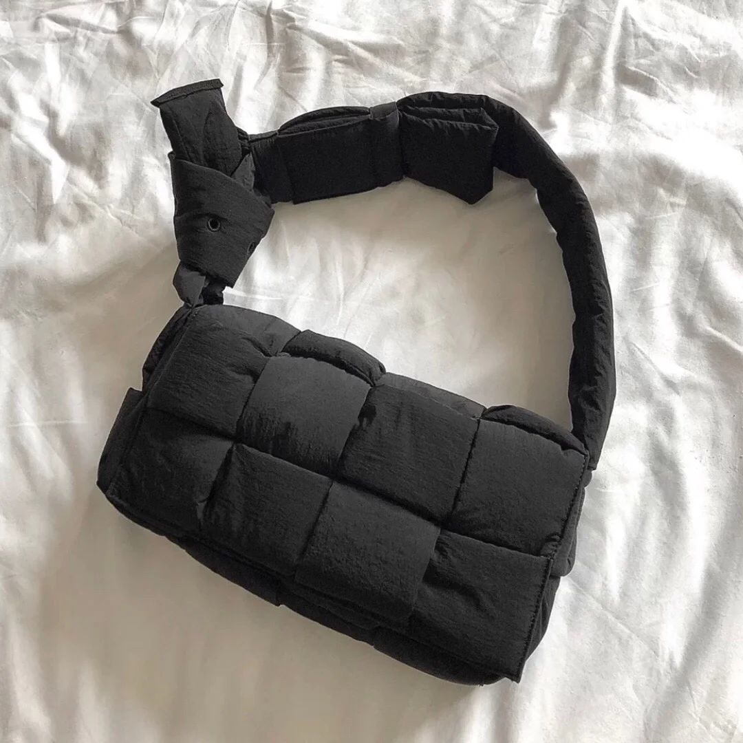 ・パッド入りイントレチャートナイロンのクロスボディミディアムバッグ