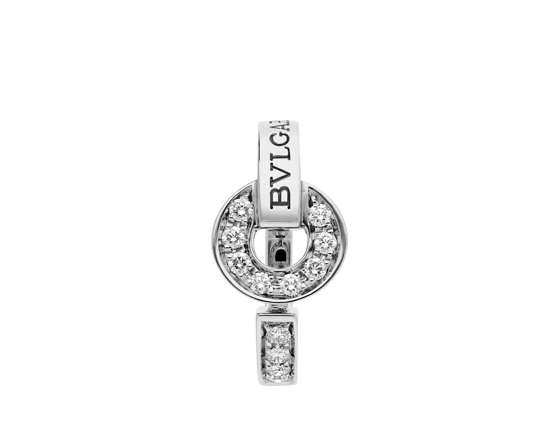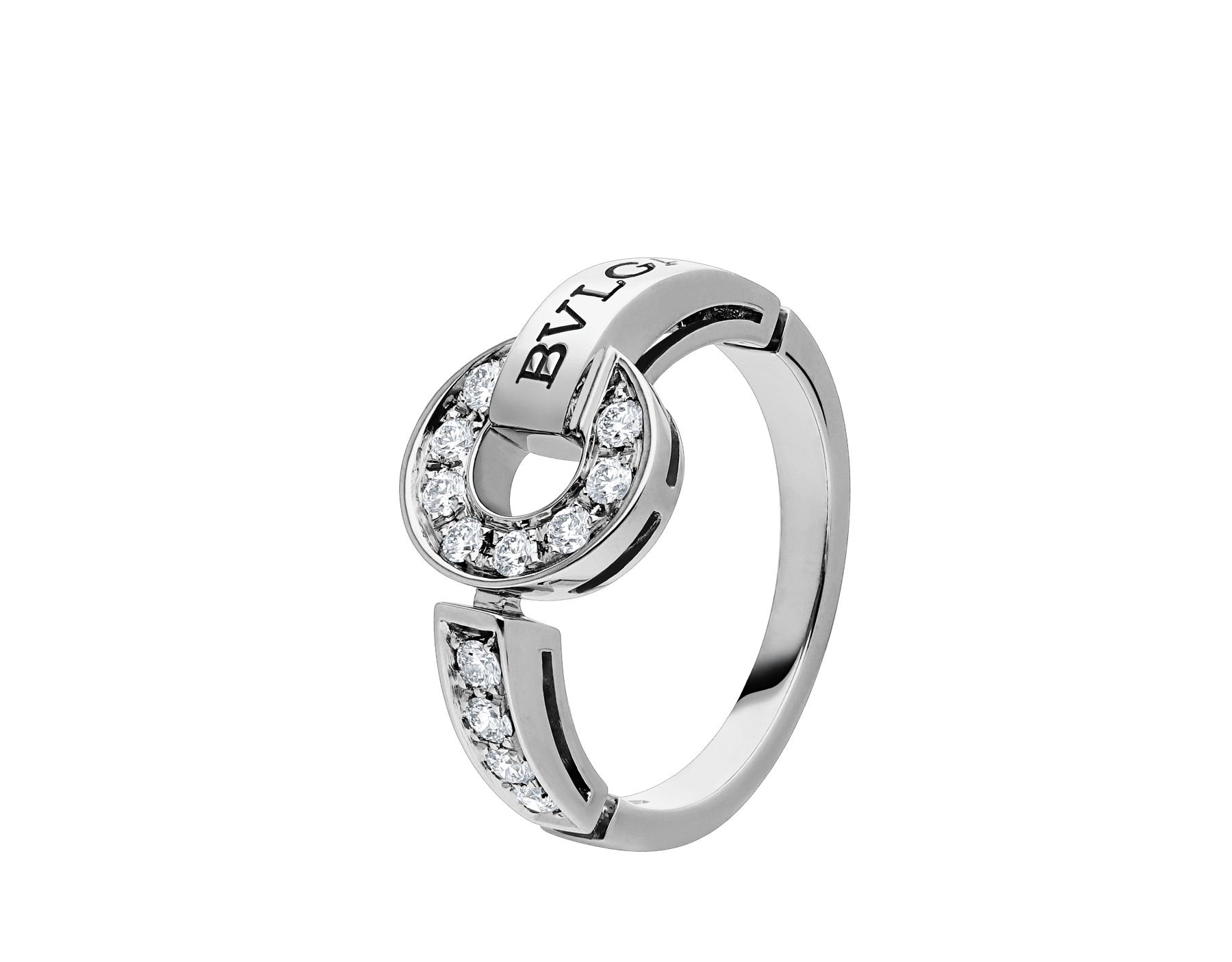 ローマをルーツとしたブランドは、歴史的文化とモダニティを雅びやかに融合するブランドに成長。ブルガリ・ブルガリのリングは、コンテンポラリーな気品を主張します。トレードマークのダブルロゴは、古代のコインに施された曲線的な文字からインスピレーションを得て誕生しました。今日このロゴは遊び心のある進化を遂げ、特徴的なデザインエレメントを構成しています。 ブルガリ・ブルガリ リング。ダイヤモンドをあしらった18Kホワイトゴールド製。