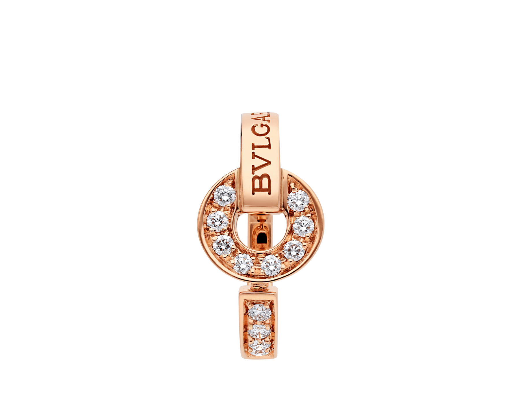 ローマをルーツとしたブランドは、歴史的文化とモダニティを雅びやかに融合するブランドに成長。ブルガリ・ブルガリのリングは、コンテンポラリーな気品を主張します。トレードマークのダブルロゴは、古代のコインに施された曲線的な文字からインスピレーションを得て誕生しました。今日このロゴは遊び心のある進化を遂げ、特徴的なデザインエレメントを構成しています。 ブルガリ・ブルガリ リング。パヴェダイヤモンドをあしらった18Kピンクゴールド製。