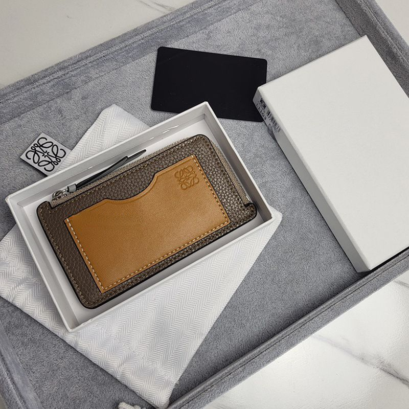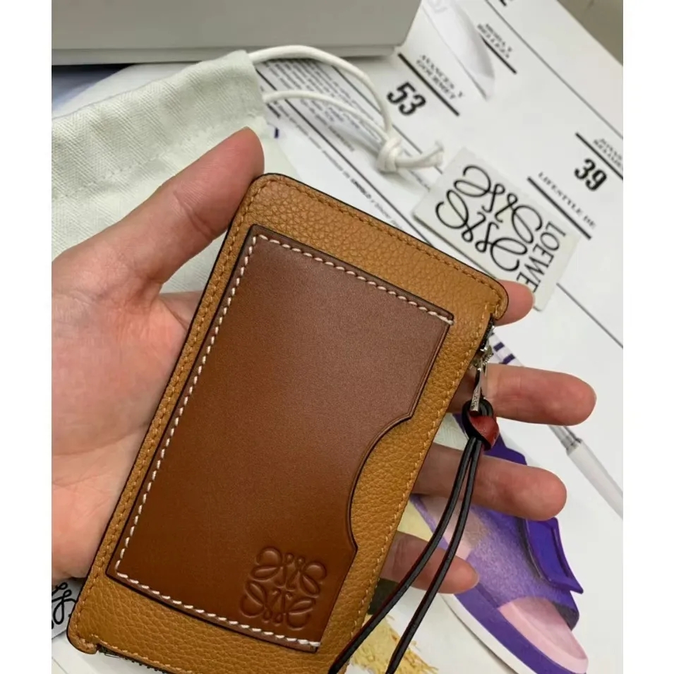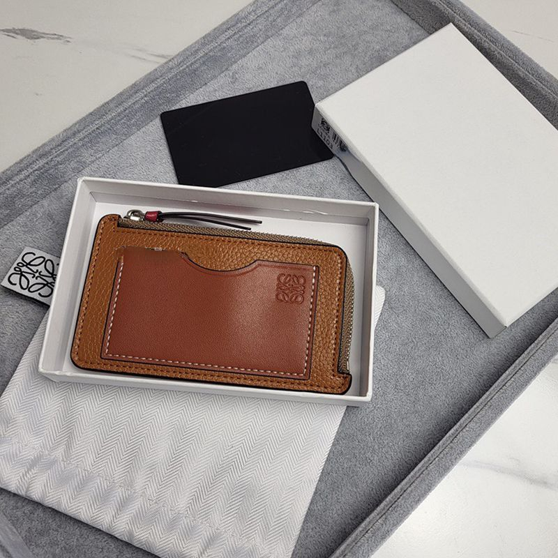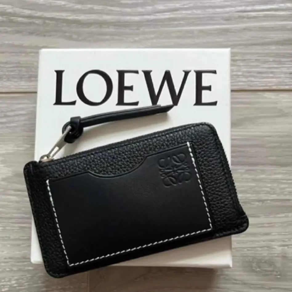エンボス加工された LOEWE アナグラム パッチが付いたサテン カーフスキンのコイン カード ホルダー。