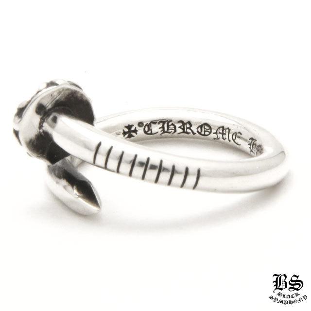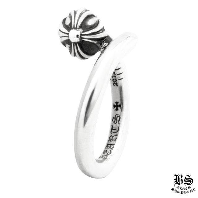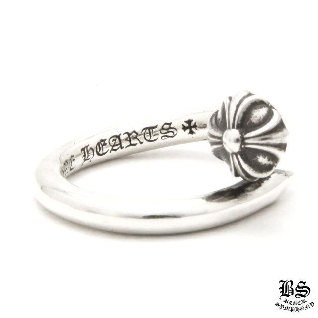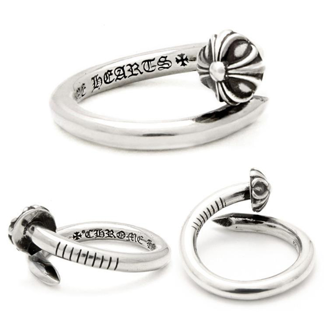 まるでシルバーのリングが指に巻き付く釘のようにデザインされたスタイリッシュなリングです。非常にファッション性の高いフォルムですが、クロムハーツの美しいシルバーも愉しめるように作られています。指輪の先端部分には、クロスボールがデザインされており、クロムハーツらしいアレンジも嬉しいリング。