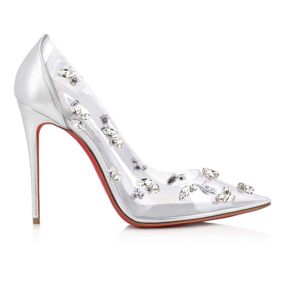 【Christian Louboutin】クリスチャン ルブタン Degraqueen Pump 100 mm PVC and Iridescent Nappa Leather Silver Pumps JP 24 cm/EU 38/US 6.5/UK 5 年末セール