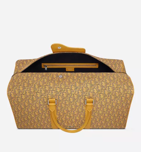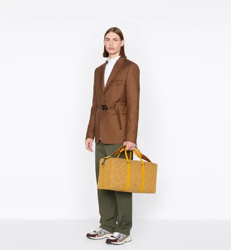 機能的でエレガントなデザインが際立つ今シーズンの新作、「Dior Lingot 50 (ディオール ランゴ 50)」ダッフルバッグ。ゴールドトーンの「ディオール オブリーク」ジャカードを、同系色のグレインドカーフスキンのディテールとフロントの“DIOR”シグネチャーが引き立てます。日々の必需品をすべて収納できるジップ付きコンパートメントには、「サドル」フラップを配しました。フォールディング仕様のトップハンドルに加えて、アルミニウムバックル付きの取り外しと長さの調節が可能なショルダーストラップが付属。ハンドバッグとしてはもちろん、ショルダーバッグやクロスボディバッグとしてもお使いいただけます。