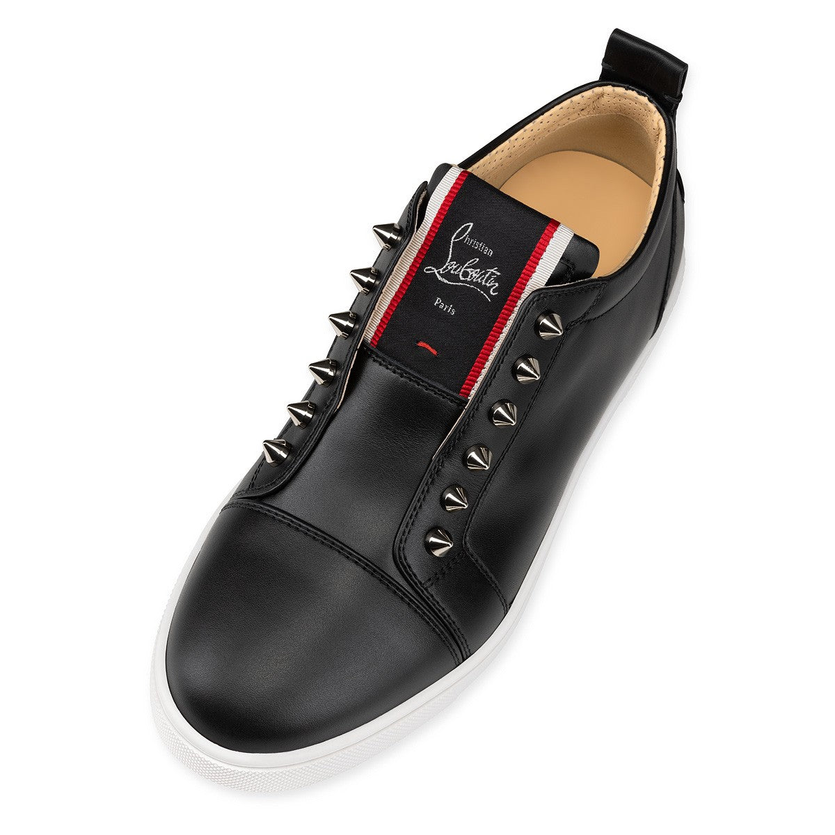 エレガントなディテールを散りばめたタイムレスなローカットスニーカー、F.A.V(Fique A Vontade)。ブラックのカーフレザーにホワイトのラバーソールを合わせました。同系色のトップステッチとシルバーのシグネチャースパイクが、都会的でモダンな表情を演出します。クリスチャン ルブタンのシグネチャーを入れたシュータンも魅力。