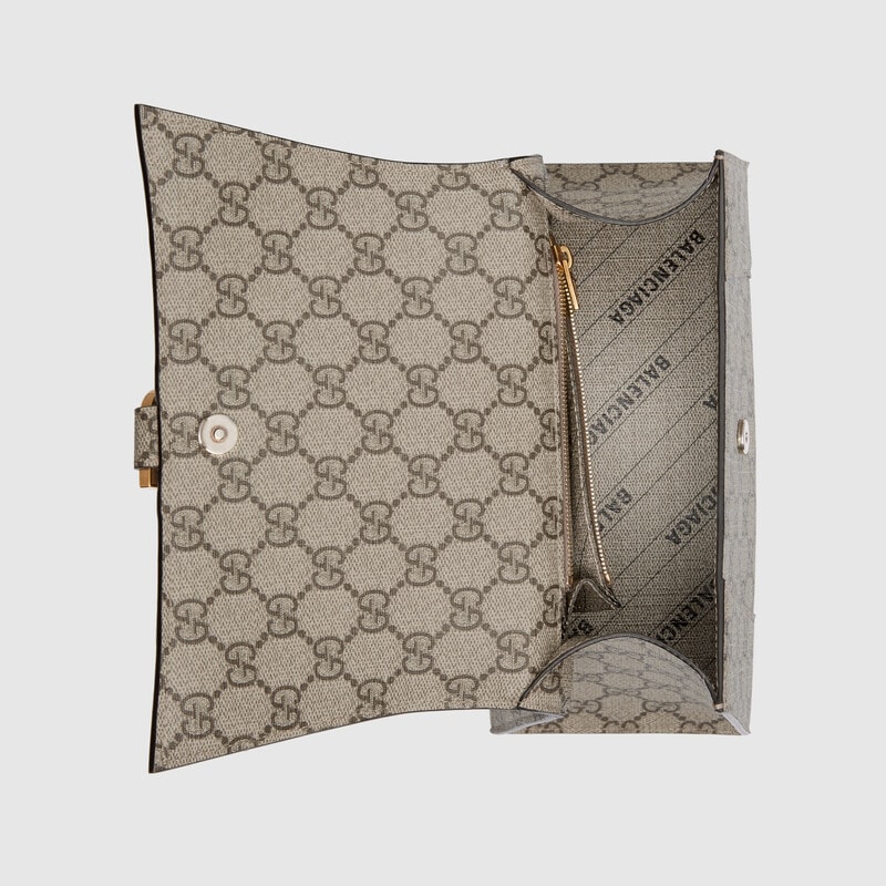 グッチの「アリア-ファッションアリア」ファッションコレクションは、ハッカープロジェクトコレクションを立ち上げ、ファッション業界のオリジナリティと流用のコンセプトを探求しています。 アレッサンドロミケリは、新しいコレクションで伝統とクラシックに敬意を表しており、象徴的なバレンシアガのシルエットとグッチの要素と衝突して、機知に富んだ調和のとれた新しい創造物を生み出しています。 この特別なコレクションの一部である砂時計のバッグは、GGSupremeキャンバスで再考されています。
