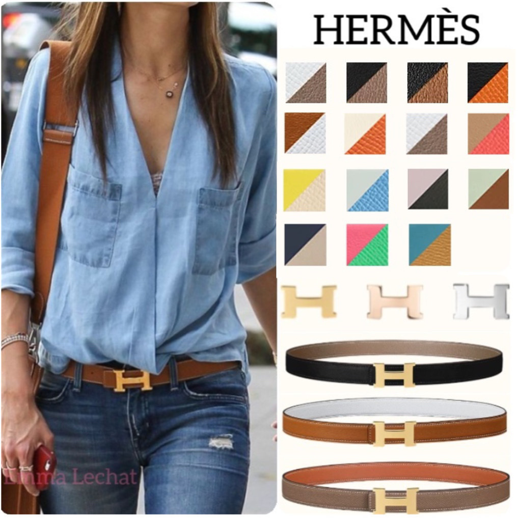 エルメス ベルト 本革 レザー カーフスキン レザーベルト メタルバックル リバーシブル バイカラー
