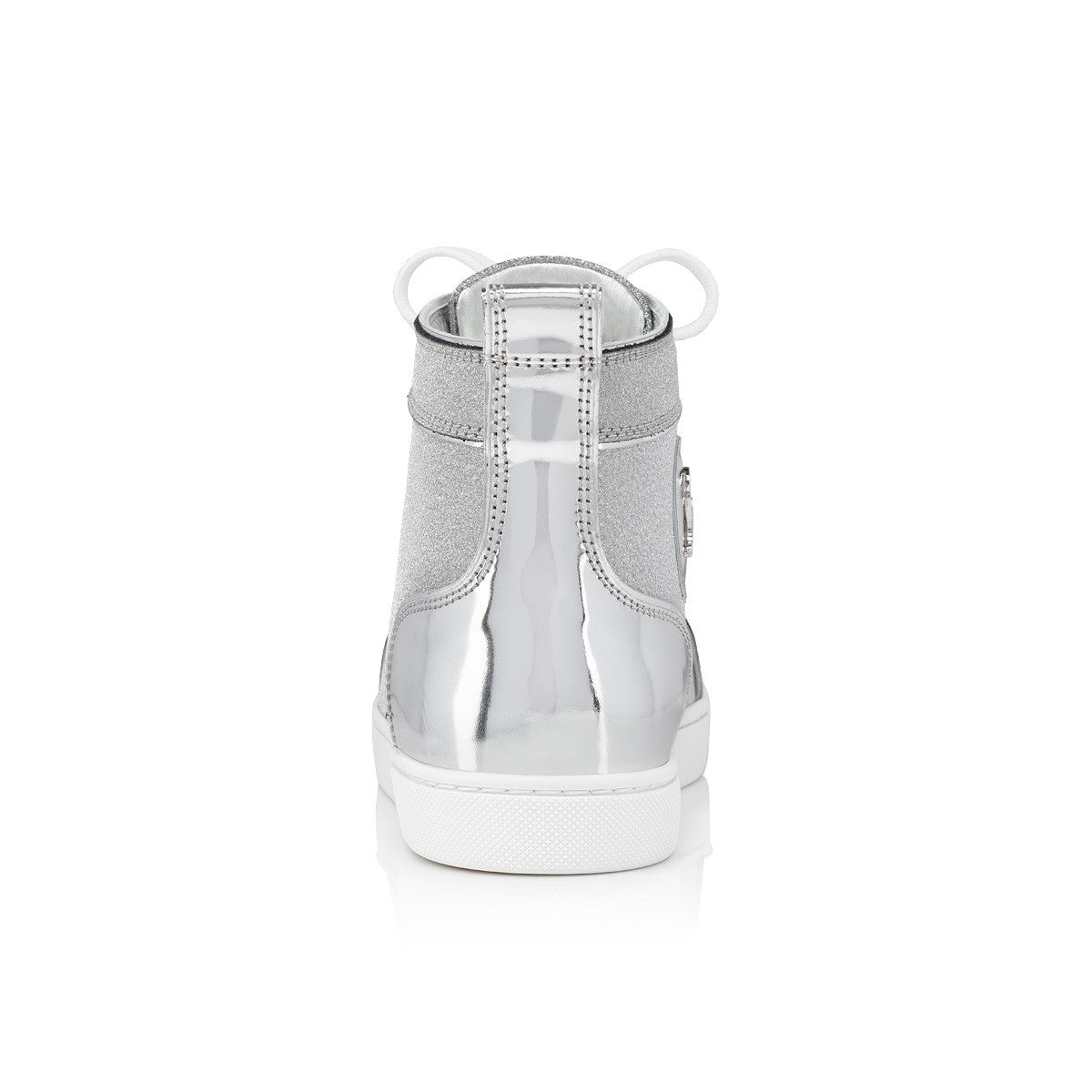 【Christian Louboutin】クリスチャン ルブタン Lou Spikes Woman Specchio Leather and Glittered Calf Leather Silver High-top Sneakers