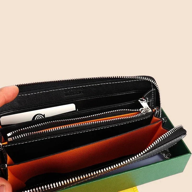 LuxFold Wallet is designed with elegance and practicality in mind. This sleek, long-shaped wallet features a secure zip closure, ensuring your essentials are safe and organized. With 12 card slots, a central zipped compartment, and two spacious compartments, it’s perfect for carrying everything you need—cards, cash, coins, and important documents. Stylish and functional, it’s the ultimate accessory for those who value both fashion and convenience.