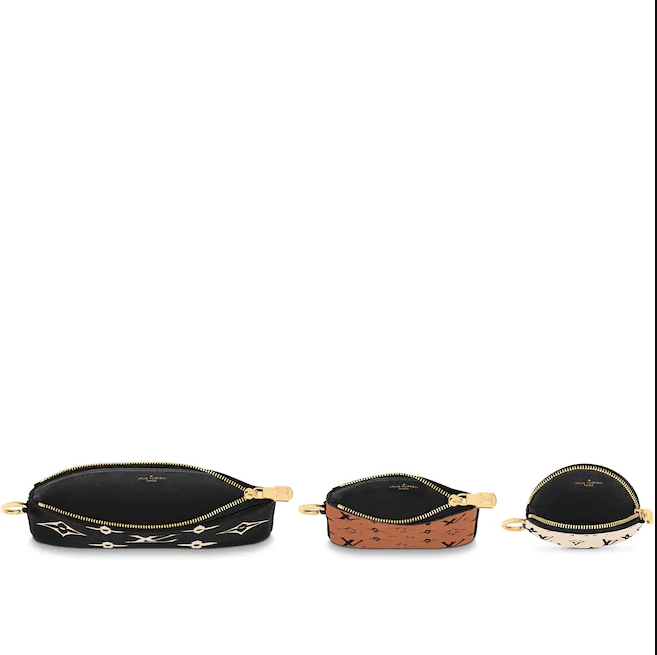 プレタポルテ、アクセサリー、レザーグッズにわたって展開する「クラフティ」コレクションに相応しくアップデートされた「ポシェット・トリオ」。モノグラム・アンプラント レザーにさまざまなサイズや色のモノグラム・パターンをプリントして仕立てた3つのポーチのセットです。セットとしてはもちろん、単体でも必需品をしっかり収納できるポーチは、リストストラップで手持ちするだけでなく、バッグやベルトに取付けてもご使用いただけます。