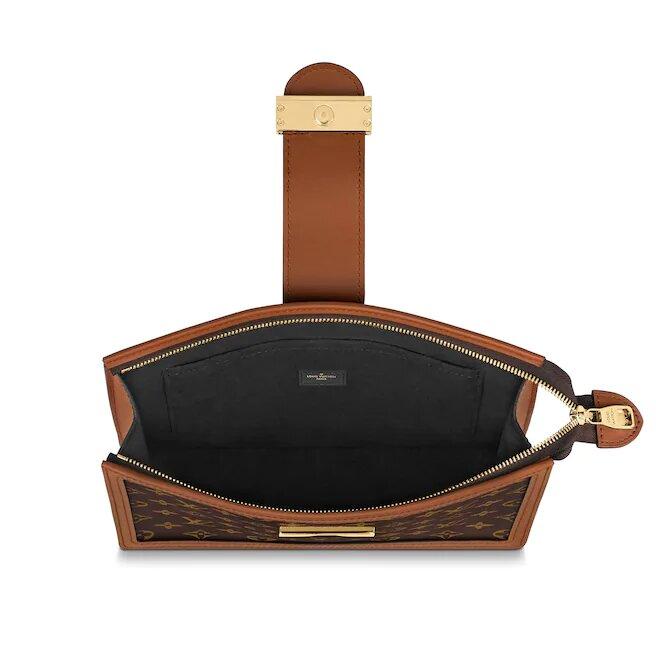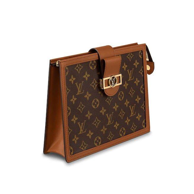 ポシェットドーフィンハンドバッグは、モノグラムとモノグラムリバースキャンバスでステッチされ、ドーフィンレザーグッズシリーズの象徴的なロックとレザートリムで装飾されており、タブレット、ドキュメント、その他の付属品を収納できます。 他のハンドバッグの持ち運びや持ち運びに適しています。