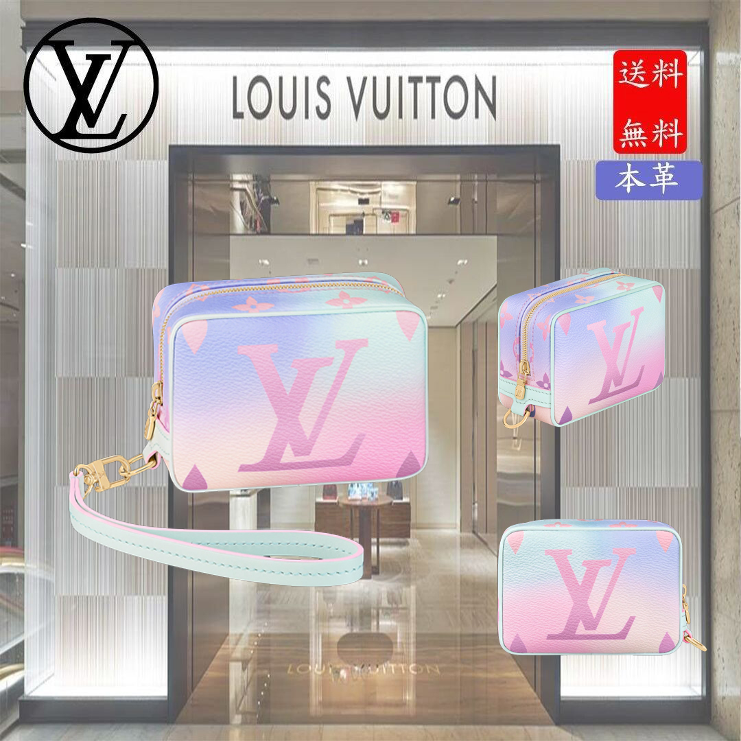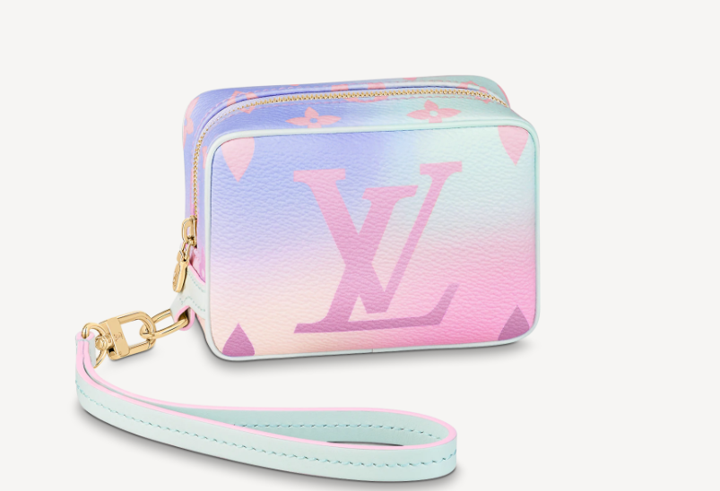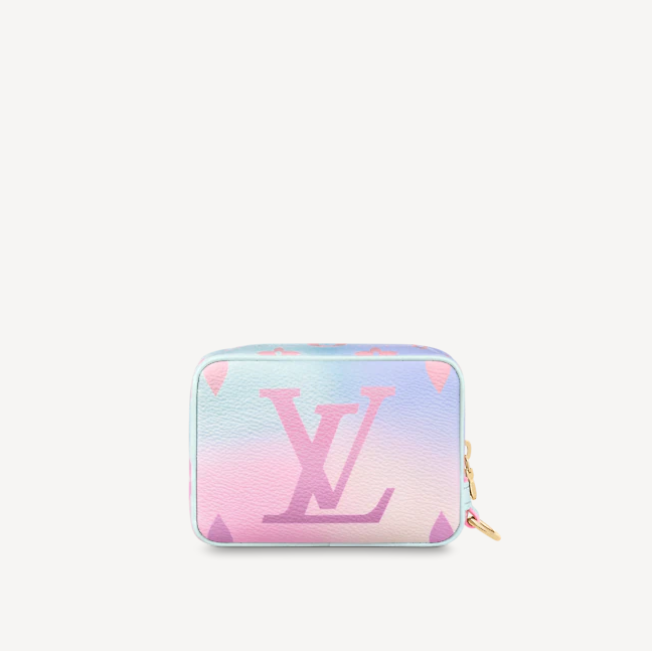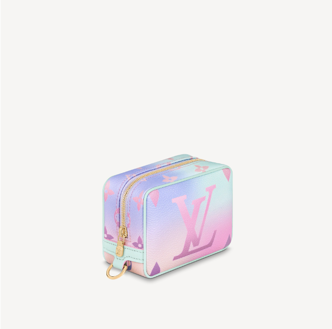 「スプリング・イン・ザ・シティ」カプセル・コレクションの1つ「トゥルース・ワピティ」。朝焼けの空から着想を得たパステルカラーのグラデーションをプリントしたモノグラム・キャンバスで仕立てました。取外し可能なリストストラップ、中身を取出しやすい幅広のファスナースタイルの開口部、内側にはフラットポケットを備えた、収納力に優れた実用的なポーチです。