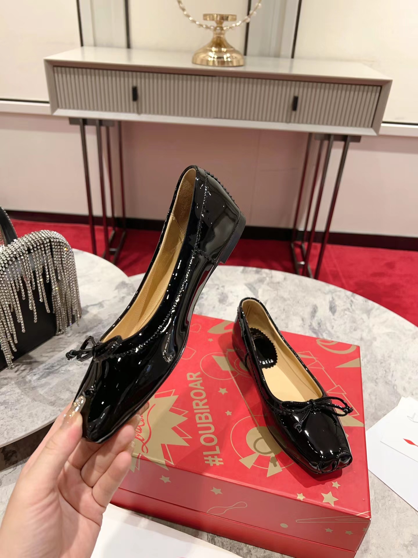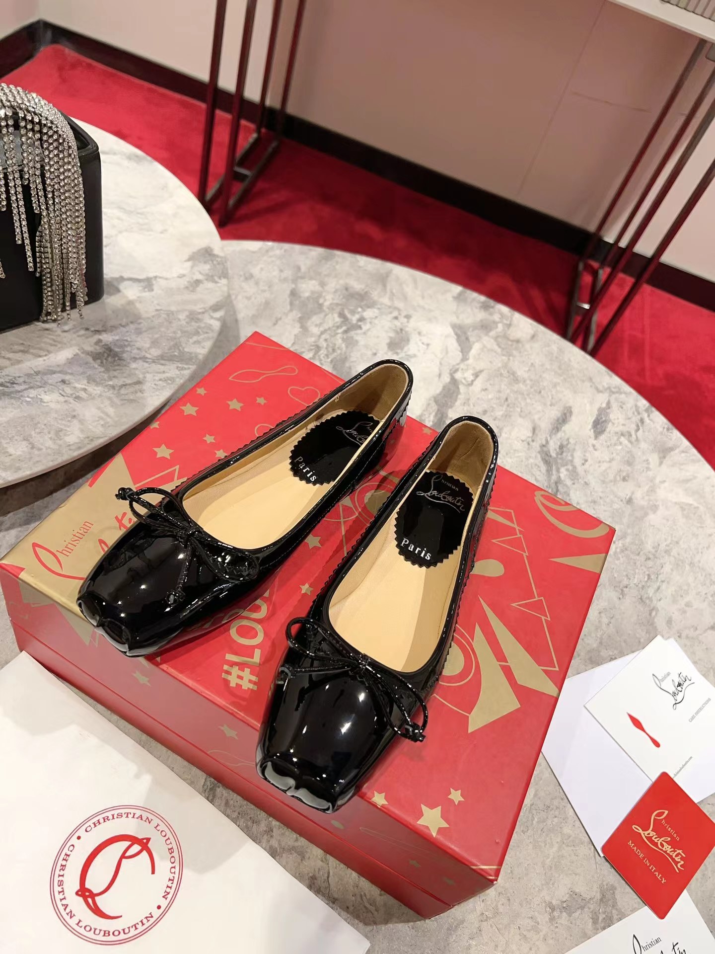 【Christian Louboutin】クリスチャン ルブタン Mamadrague Ballerinas Patent Leather Black