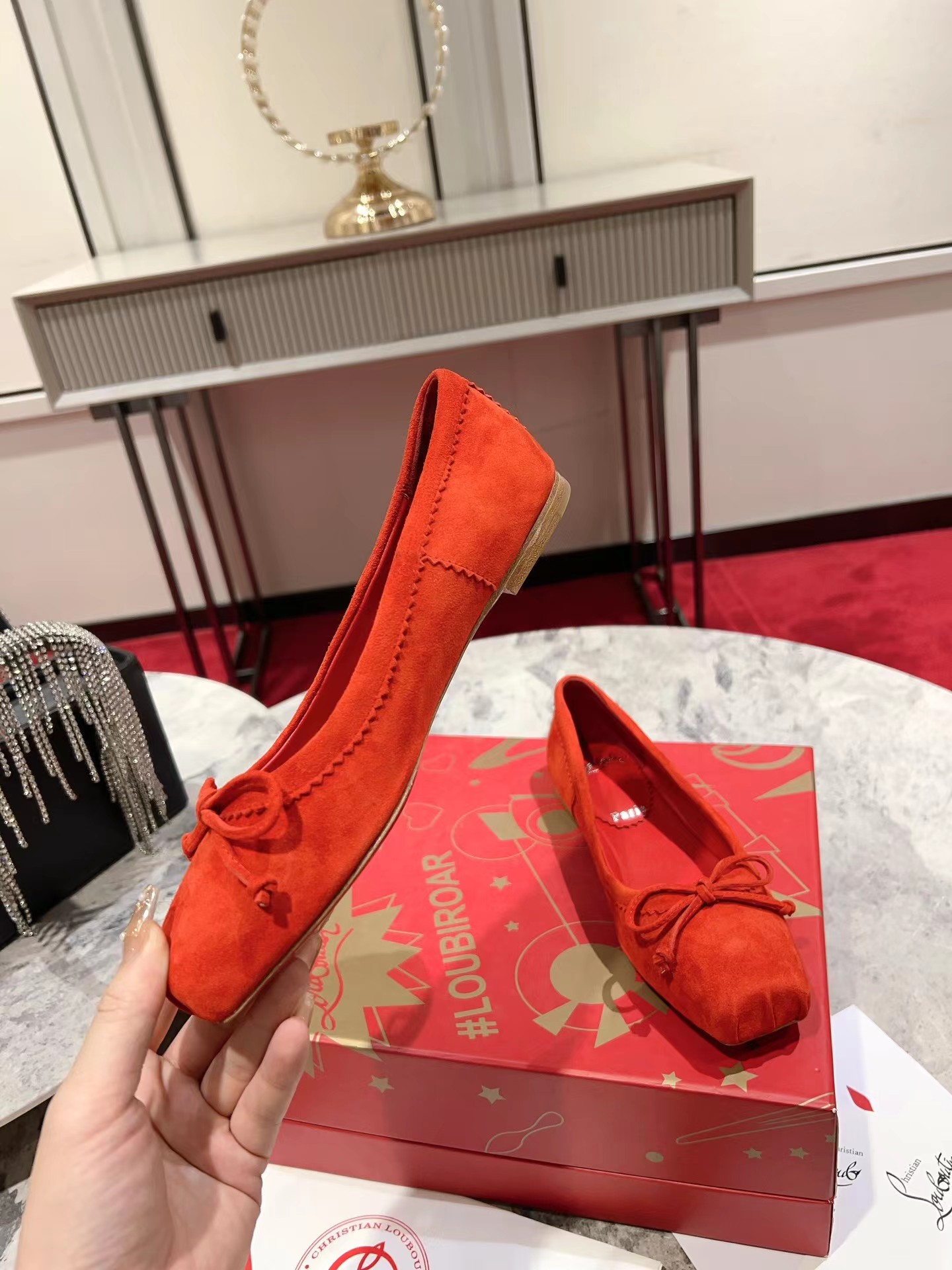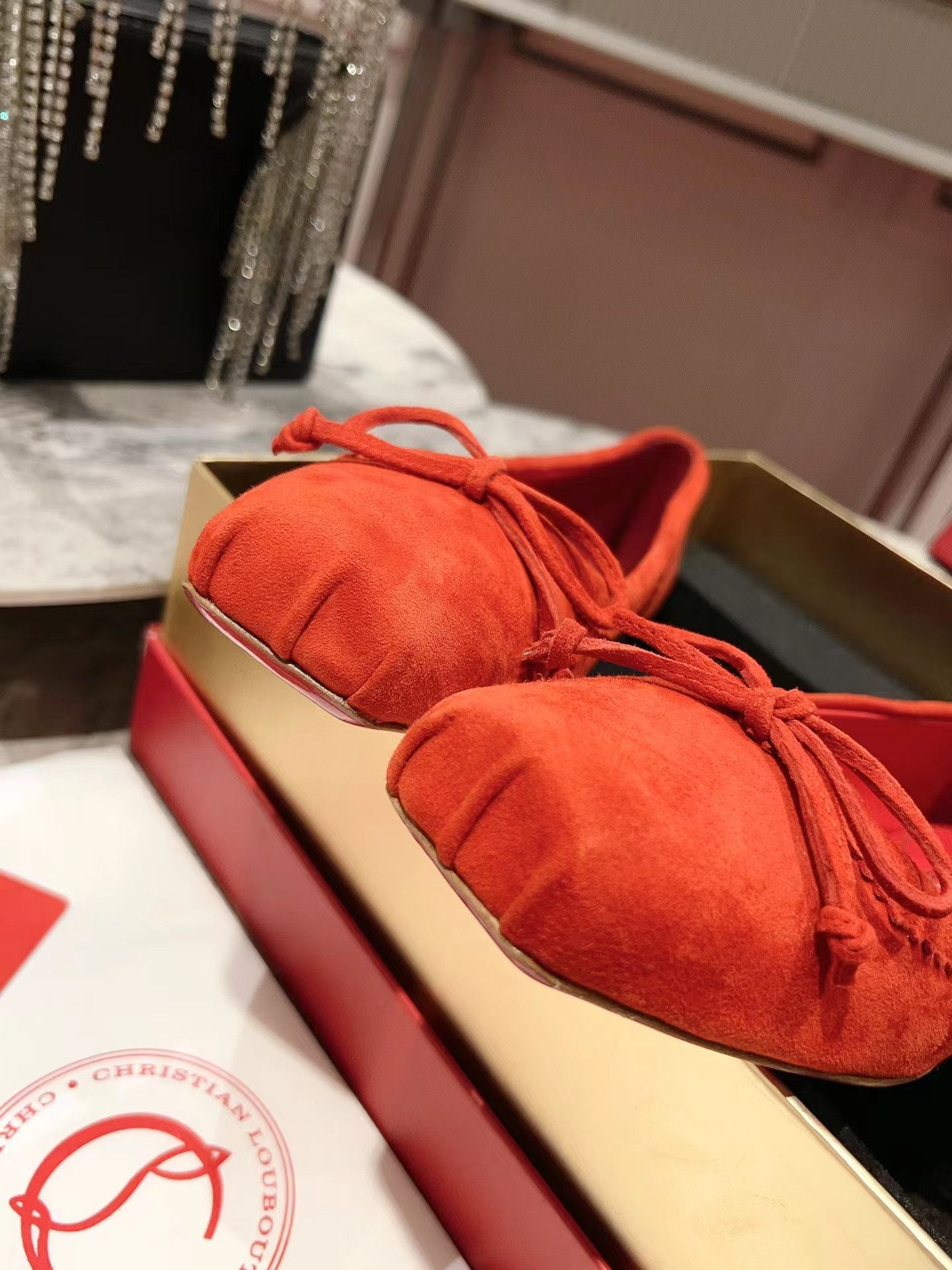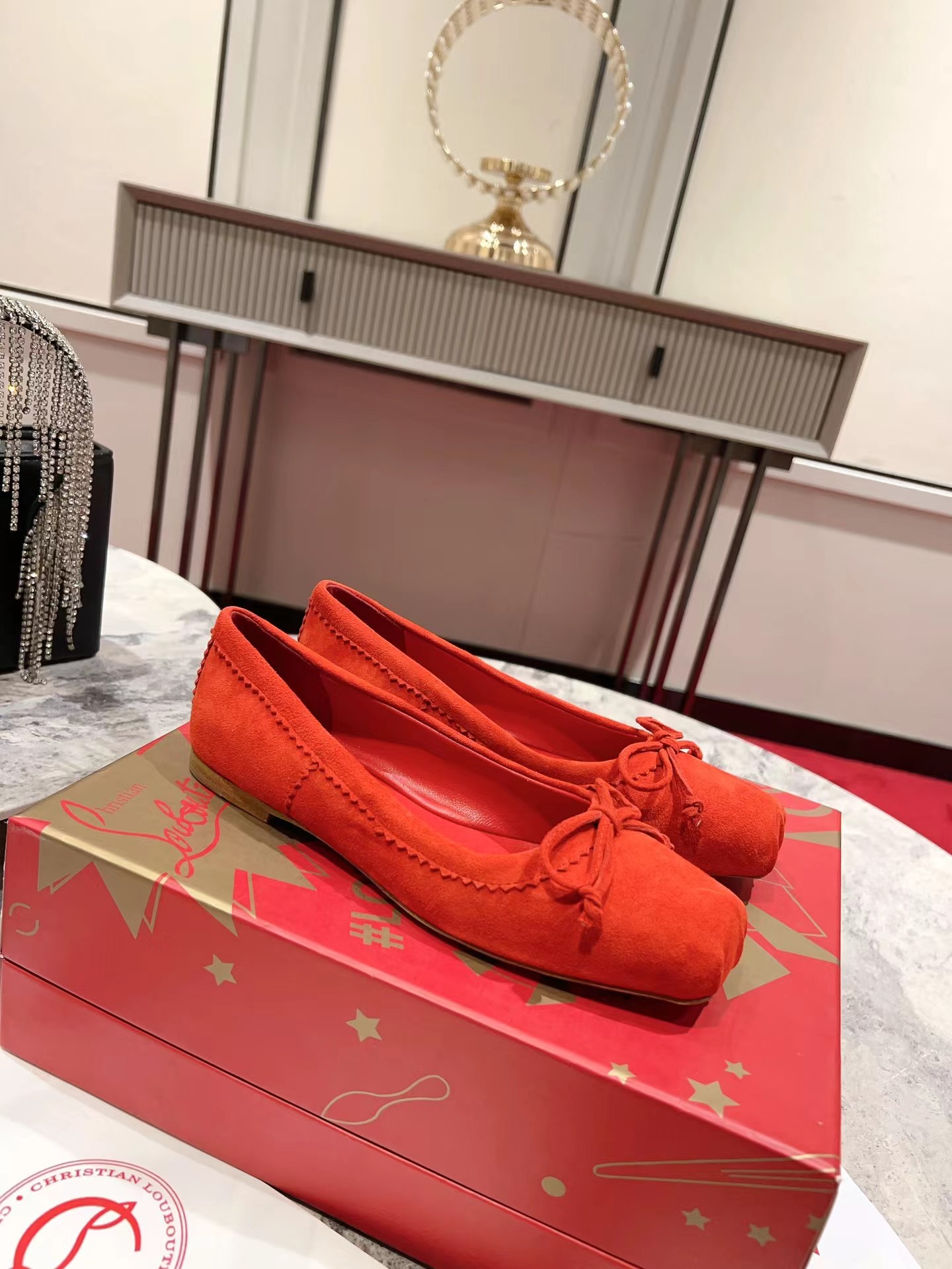 【Christian Louboutin】クリスチャン ルブタン Mamadrague Ballerinas Veau Velours Red