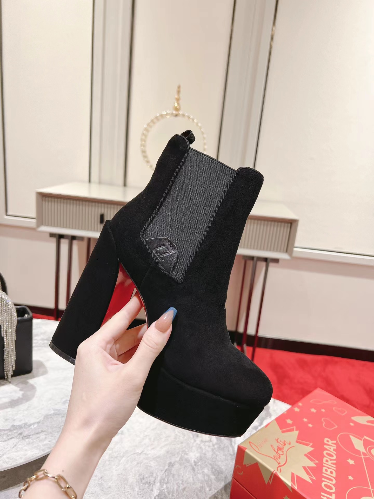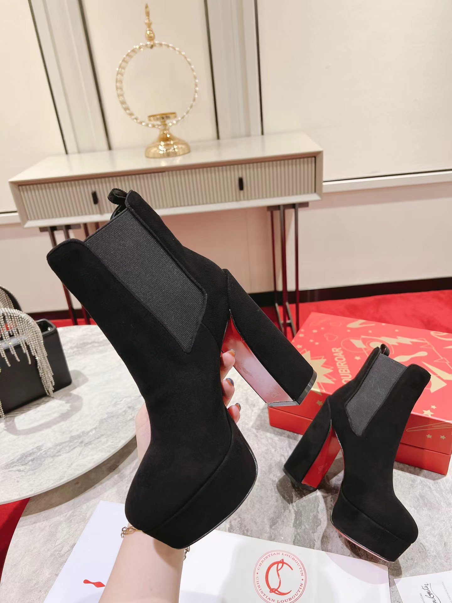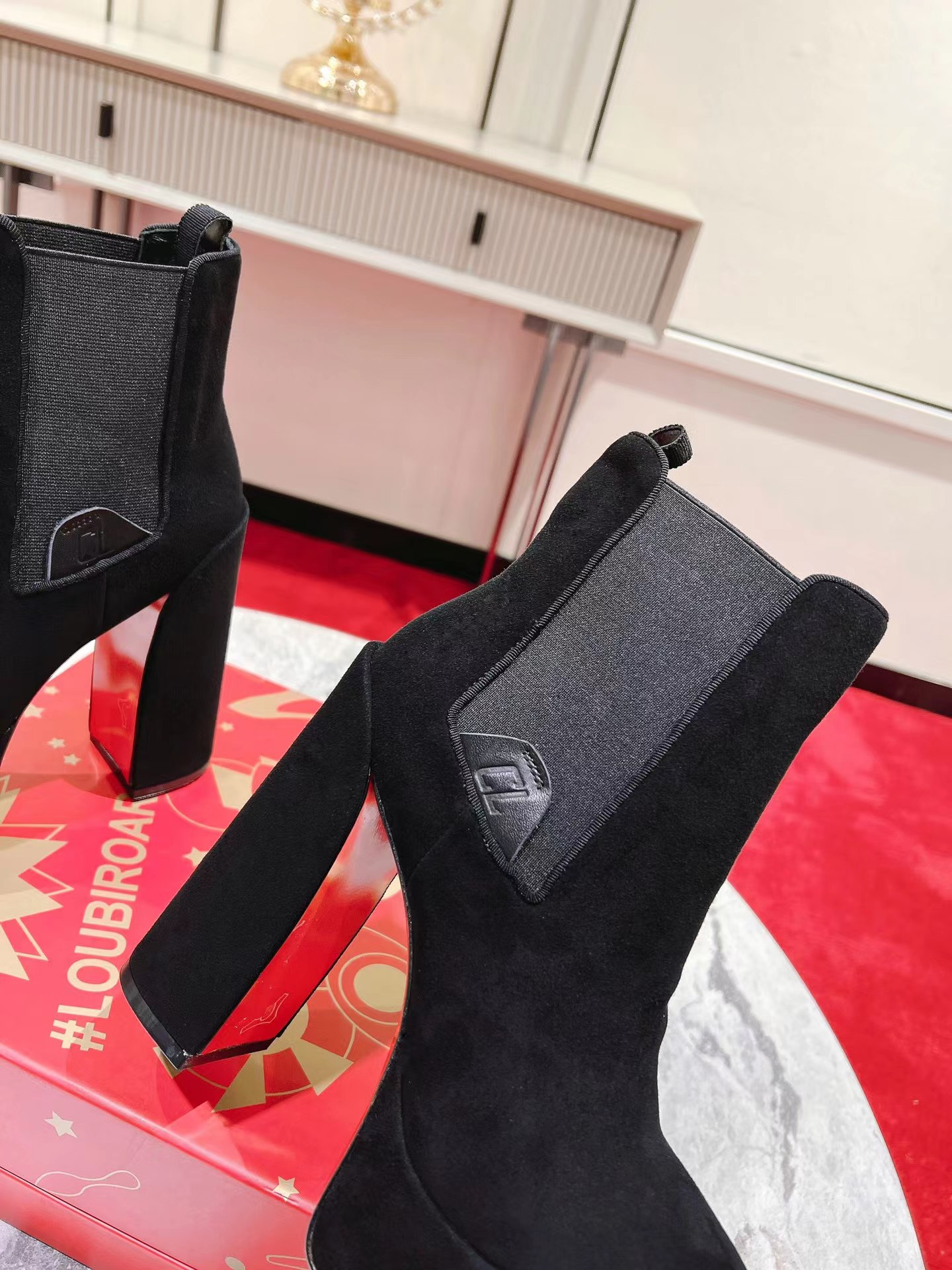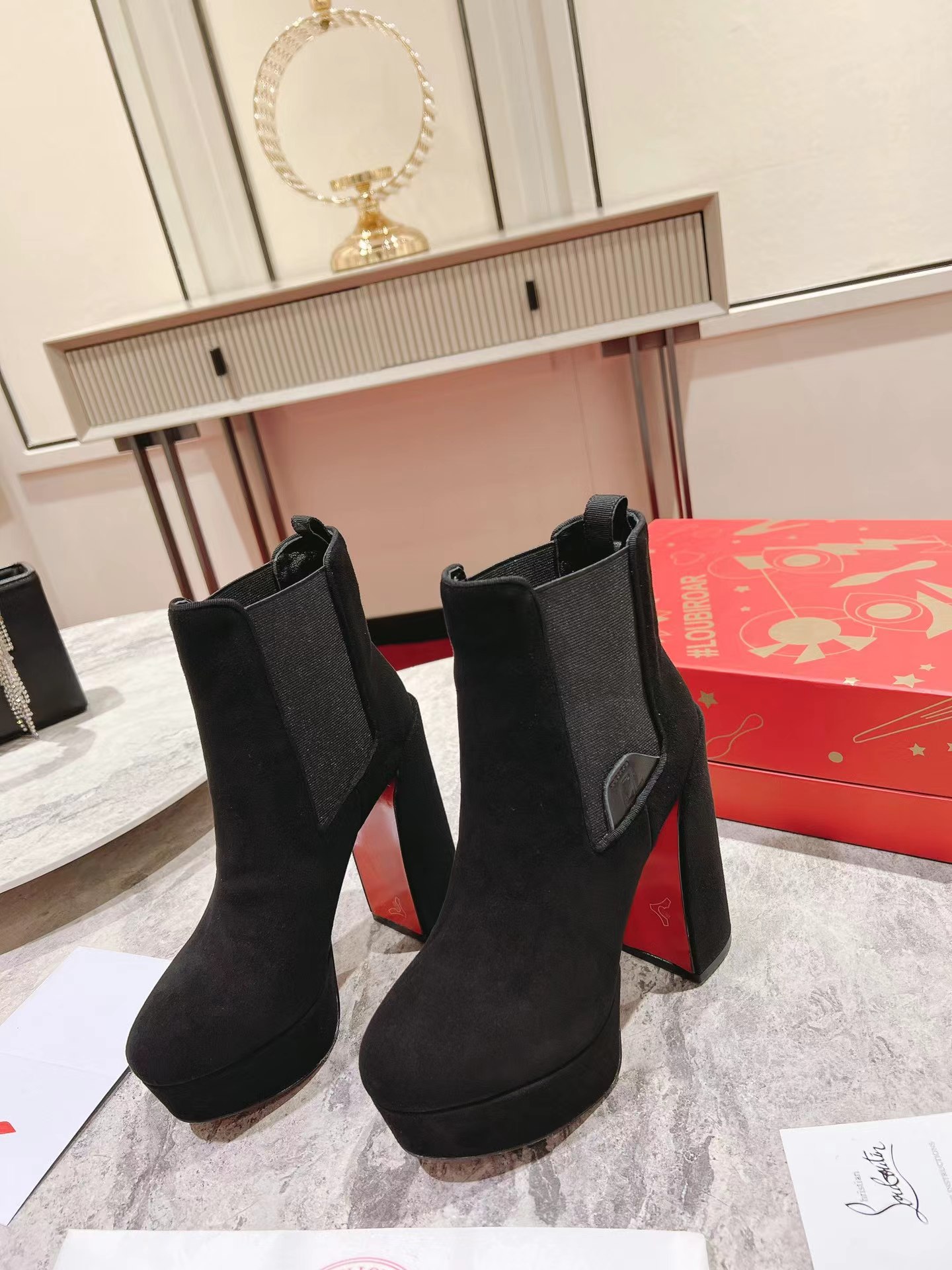 【Christian Louboutin】クリスチャン ルブタン Movidastic 130 mm Low Boots Veau Velours Black