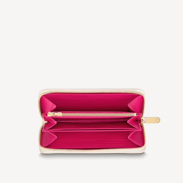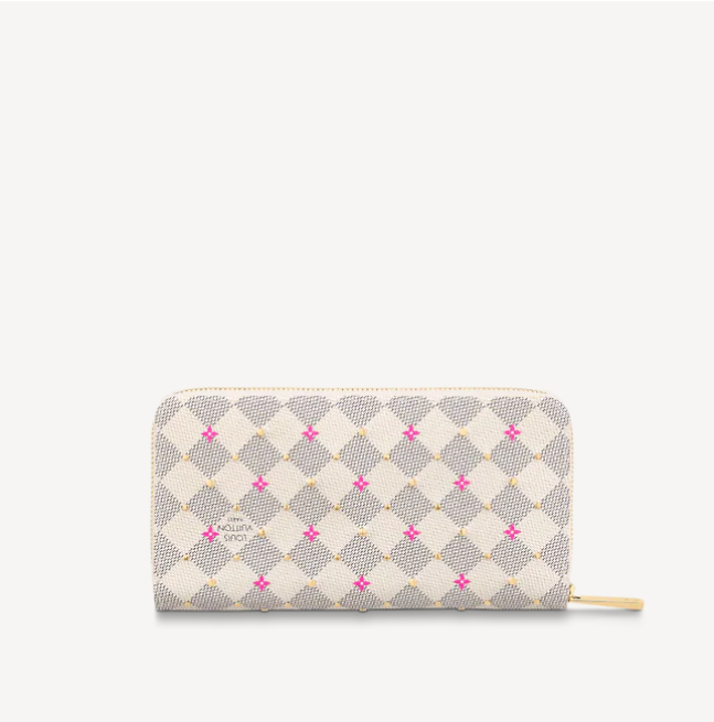 「ダミエ・アズール スタッズ」コレクションのために再解釈された「ジッピー・ウォレット」。ダミエ・アズール キャンバスに、フューシャピンクのフラワー・モチーフのプリントと、小ぶりのゴールドカラーのスタッズをあしらいました。安心感のあるラウンドファスナーを開くと現れる、コントラストを効かせたピンクのライニングと、複数のコンパートメントやポケット、カードスロットを備えた内装も魅力です。