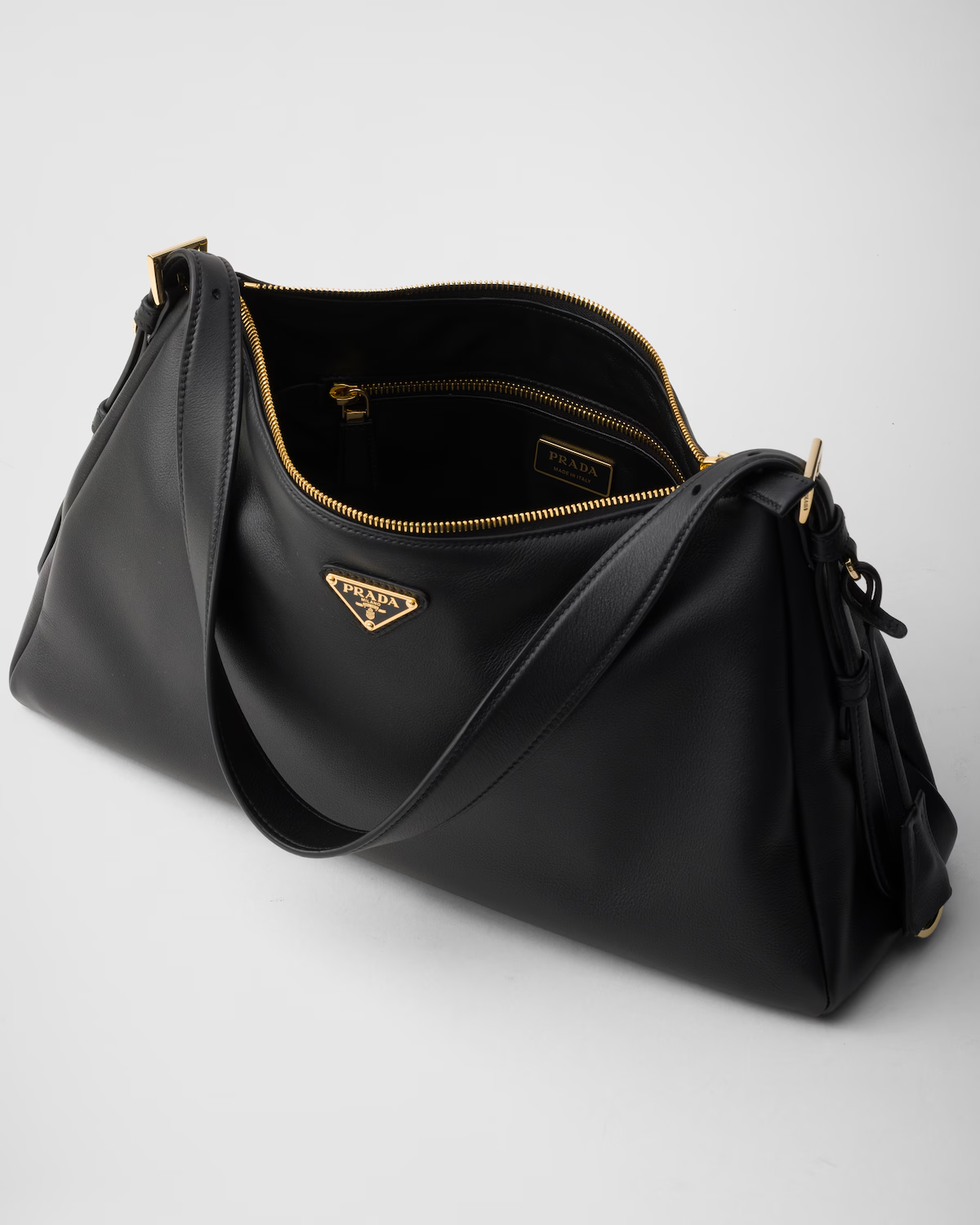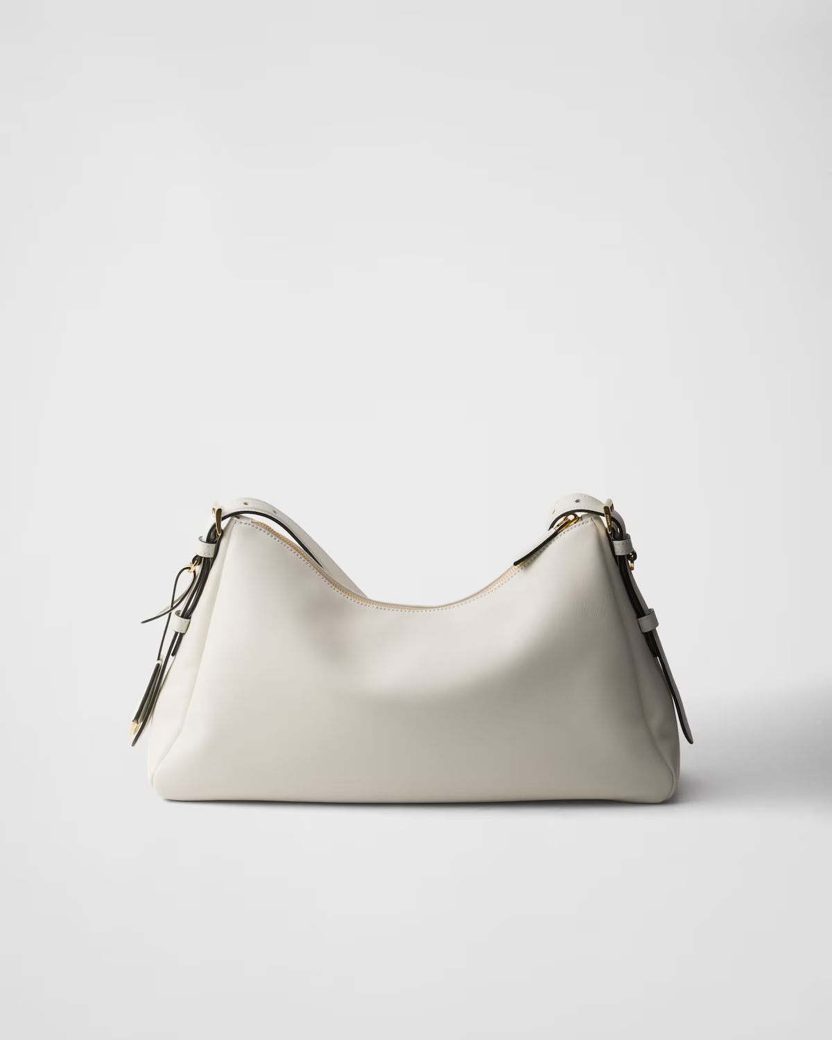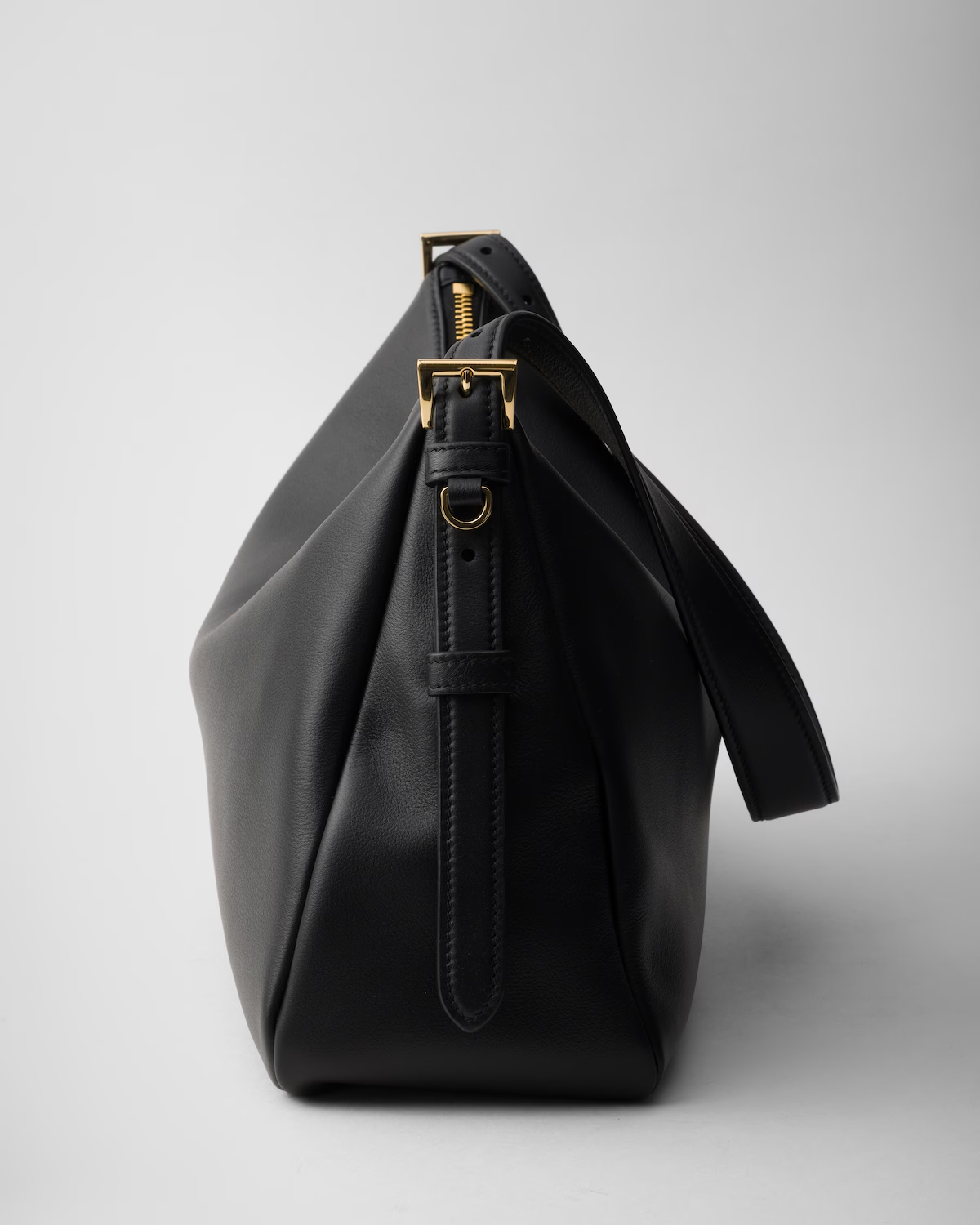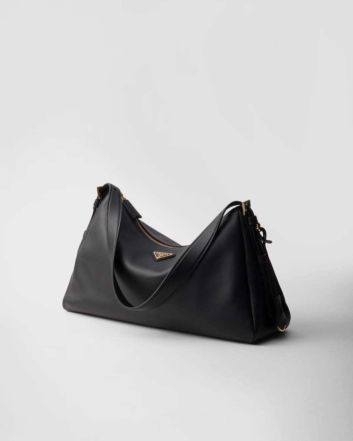 90 年代の洗練されたミニマリズムにインスピレーションを得た、2024 年秋冬キャンペーンに登場する新しい Prada Aimée バッグ。肩にかけたり斜めがけしたりしやすい柔らかなシルエットで、バッグを持つ本能的な動作を思い起こさせるデザインです。