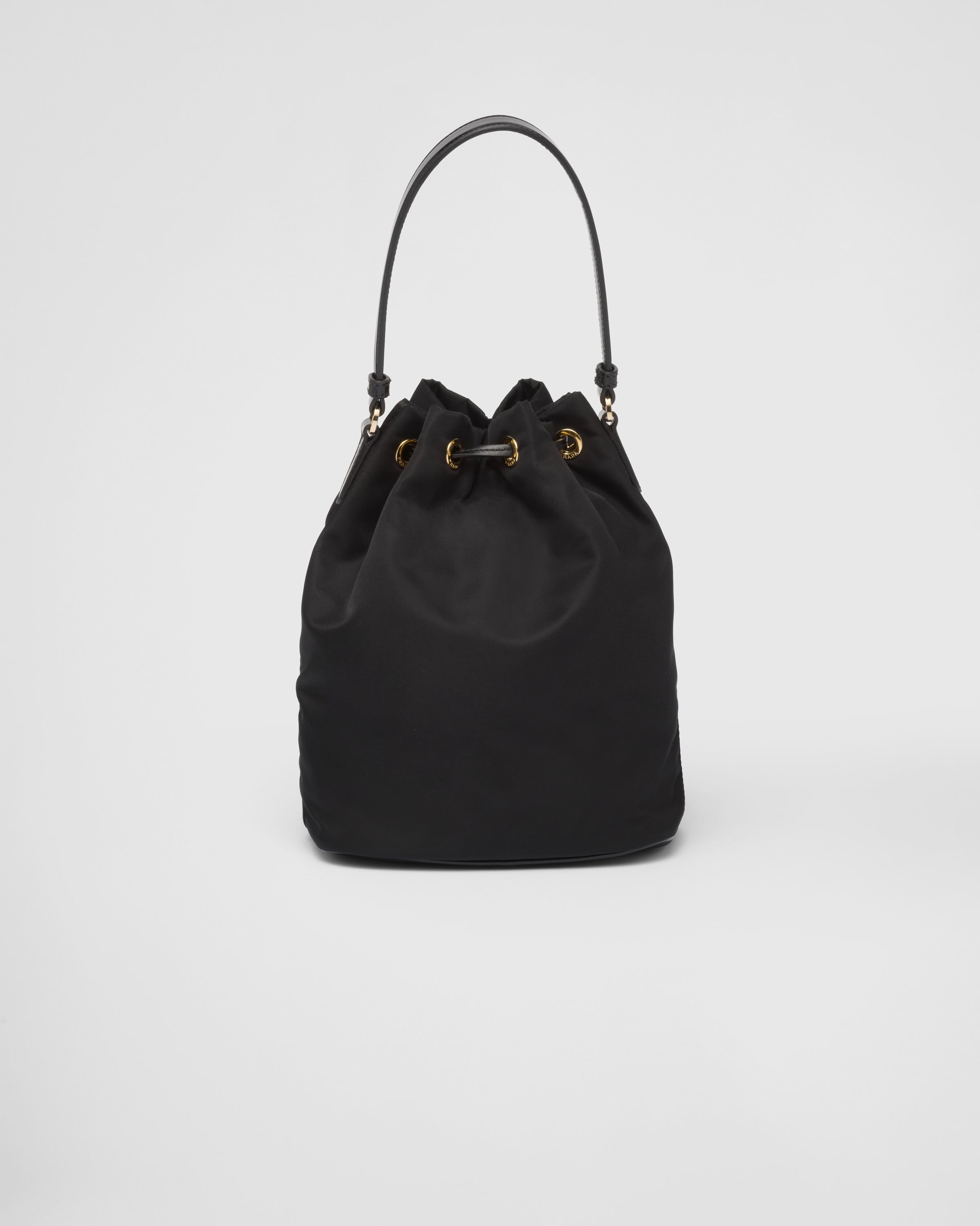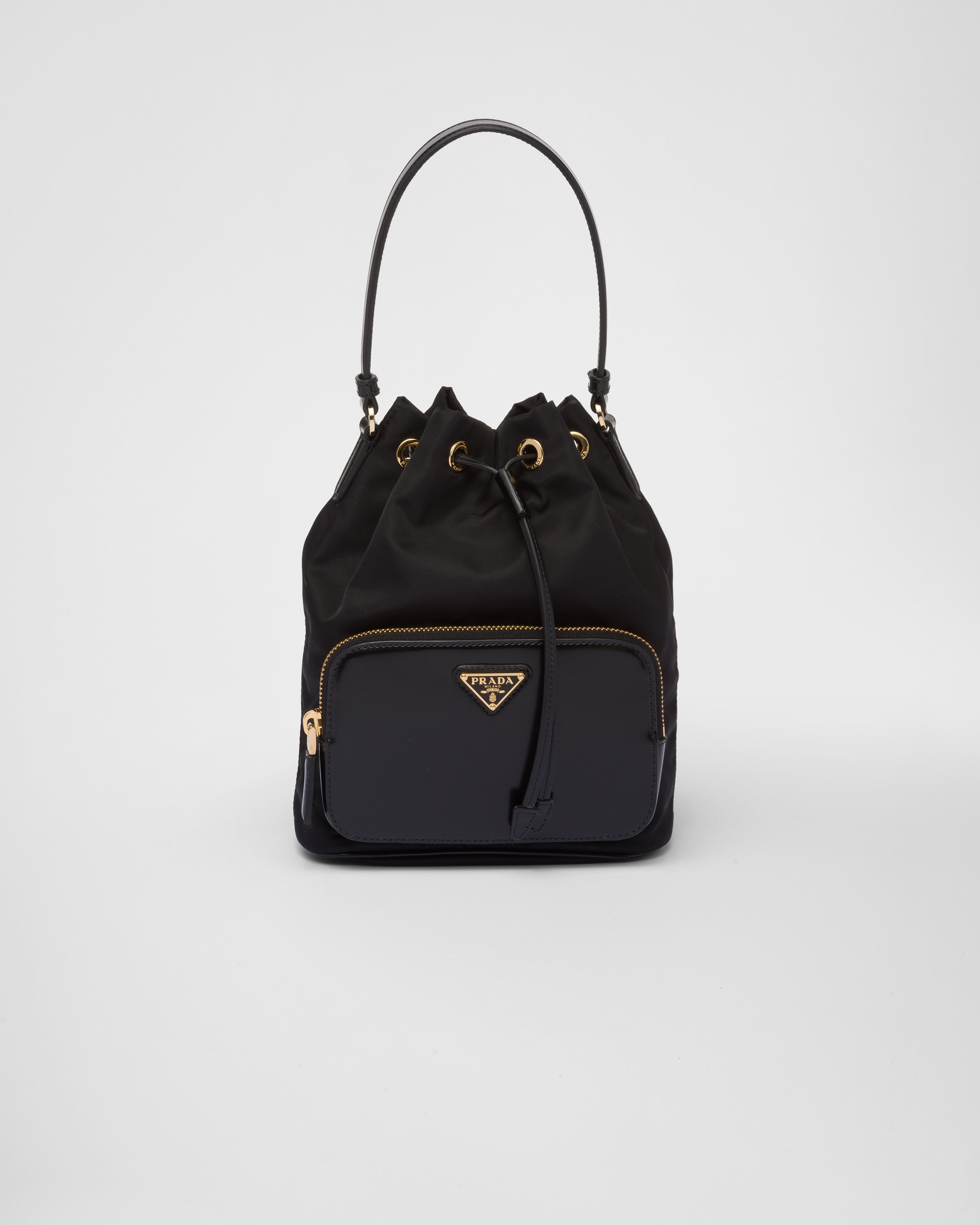 取り外し可能なハンドルとショルダーストラップ付でハンドバッグとしてもクロスボディバッグとしても使用できる、カジュアルで使い勝手に優れたバケットバッグ。ソフトでモダンなシルエットが魅力。革新的な再生ナイロン素材のRe-Nylonに、洗練されたブラッシュドレザー(牛革)のディテールとメタルパーツを組み合わせたデザイン。外側にファスナー付ポケットを配し、エナメルメタルのトライアングルロゴをあしらいました。