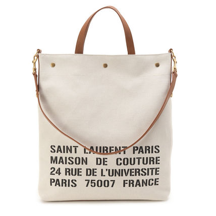 スナップボタンクロージャー付き折りたたみ式トートバッグ。SAINT LAURENT パリのアドレスプリント レザーのチューブハンドルが特徴です。
