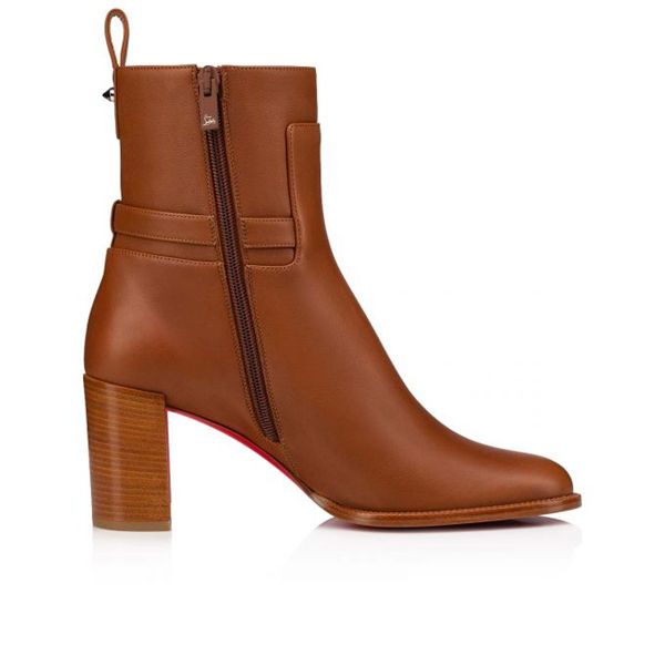 The timeless Lock Booty ankle boot features seductively clean lines. This Maison Christian Louboutin model is set on a 70 mm heel. It is designed in brown calfskin leather and features a silver buckle on the side, finished with the CL monogram. This shoe has a tab at the back and a signature silver spike, creating a refined style.