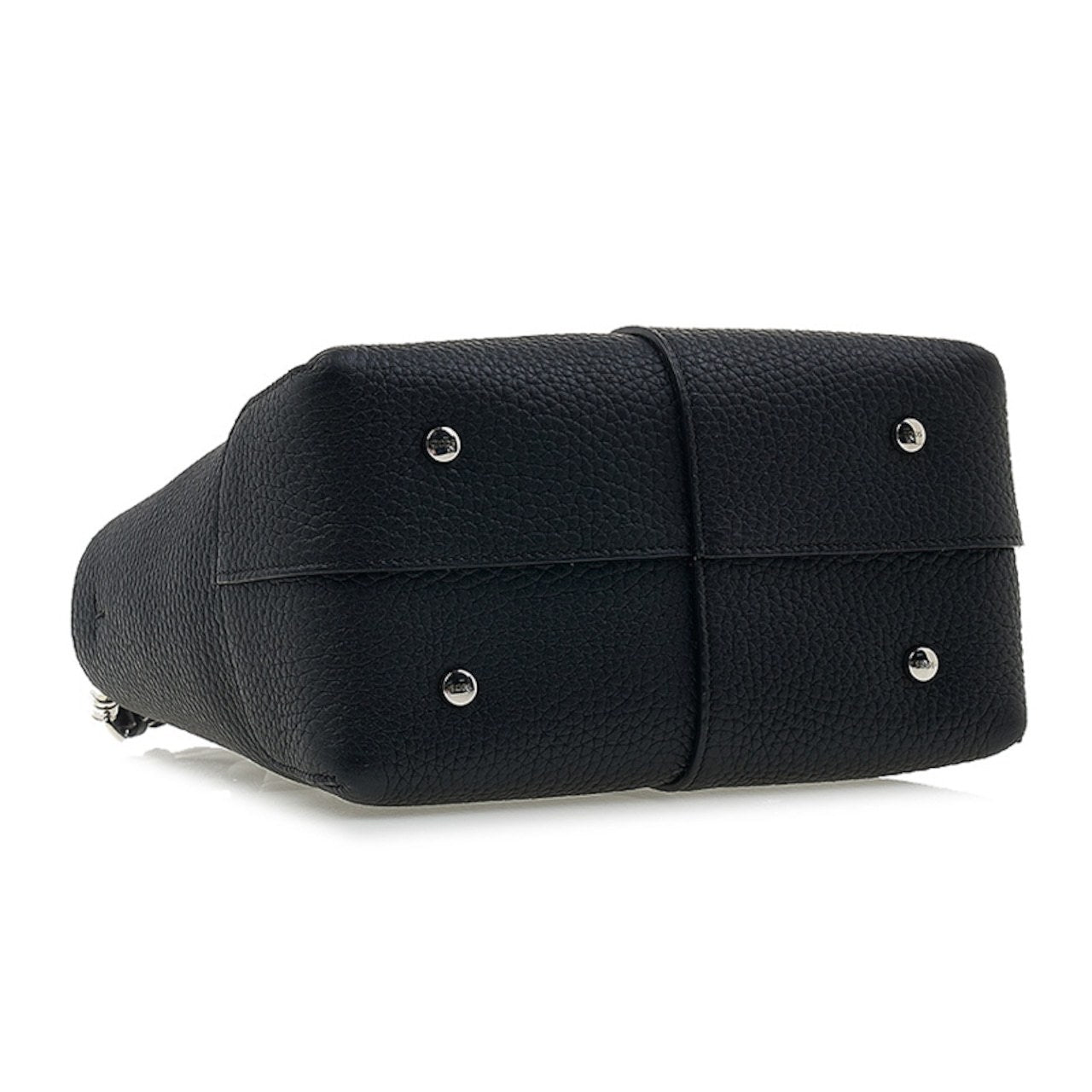 ジェットブラック、カーフレザー、グレイン調、同系色ステッチ、フロントにロゴパッチ、シルバートーンの金具、トップにジップ式開閉、ラウンドトップハンドル、取り外し&調節可能なショルダーストラップ、メインコンパートメント。