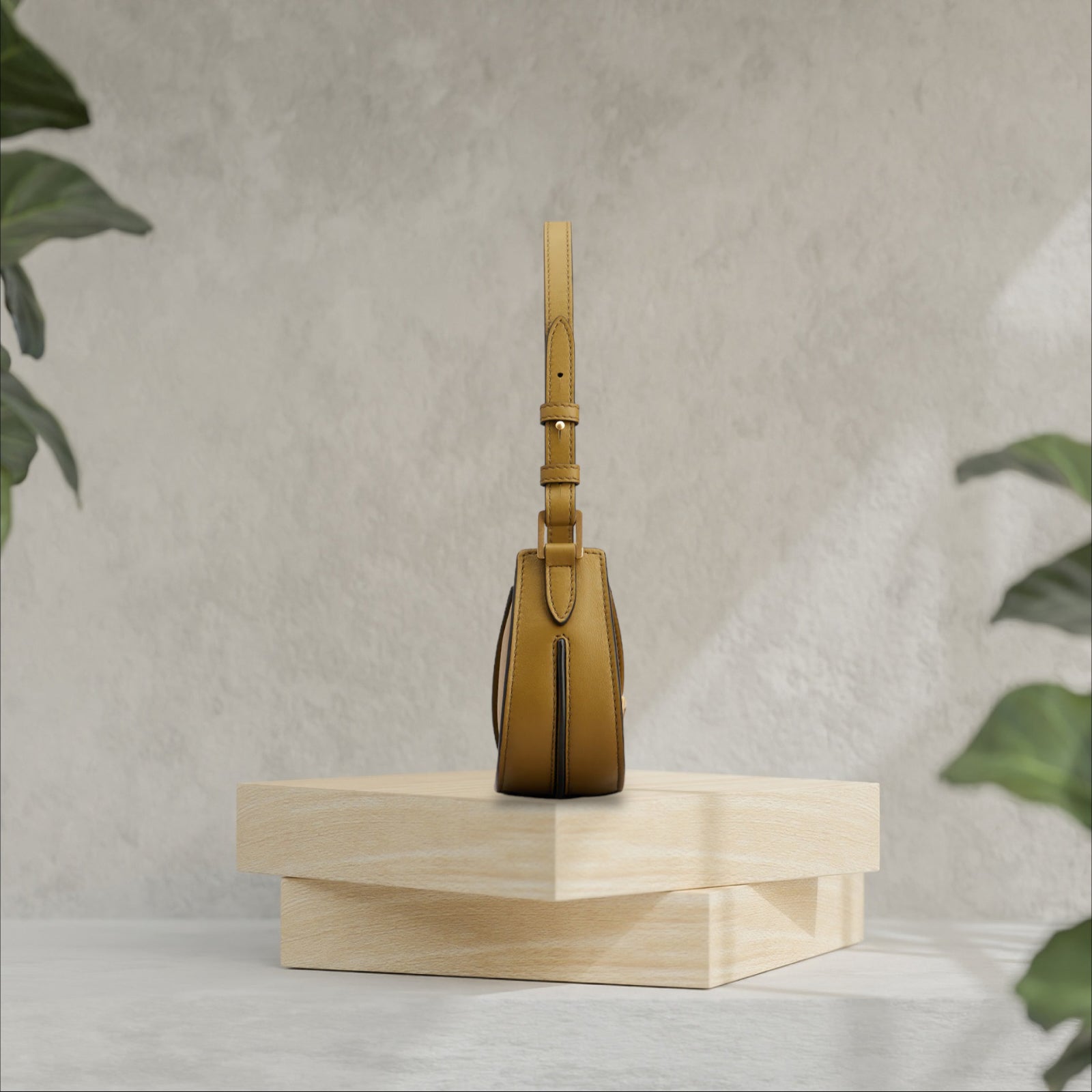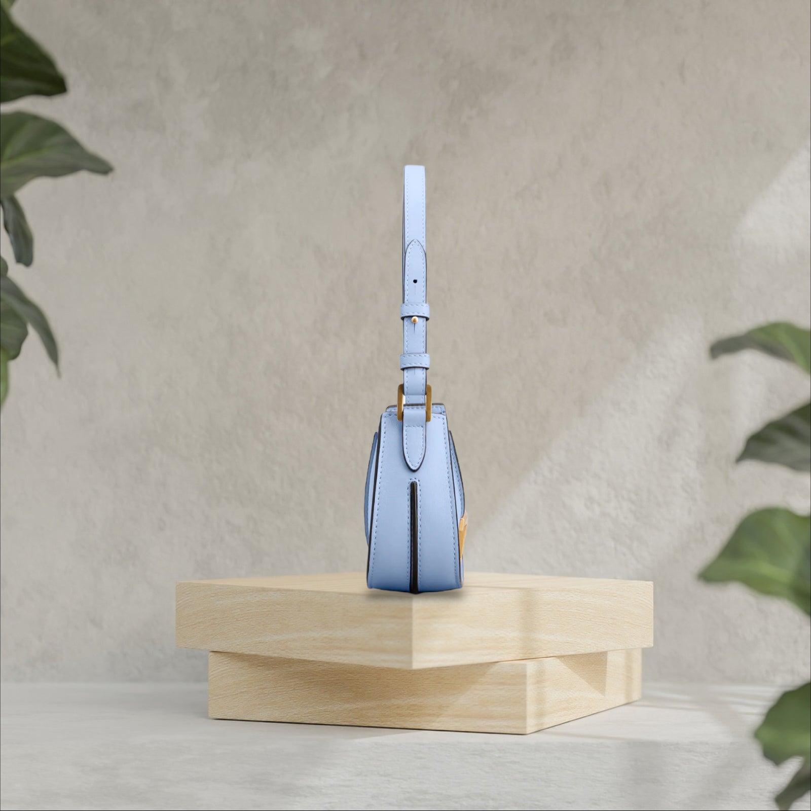 スムースレザーの半月型バッグ。