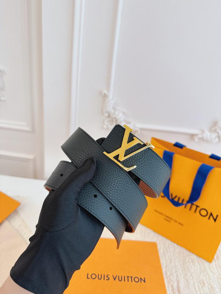 LOUIS VUITTON/ルイ・ヴィトン 4.0cm幅 ブラック & ベージュ 荔枝(リッチ)グレインレザー ベルト ベルト