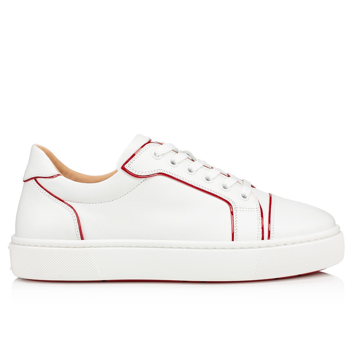 ホワイトのラバーソールにヌードカラーのカーフレザーでライニングを施したローカットスニーカー、Vieirissima。ホワイトカーフレザーを全体に使用し、アッパーは繊細なレッドのパテントカーフレザーで仕上げました。クリスチャン ルブタンならではのエレガントなラインが光る、ダイナミックかつタイムレスでミニマルな雰囲気の1足です。