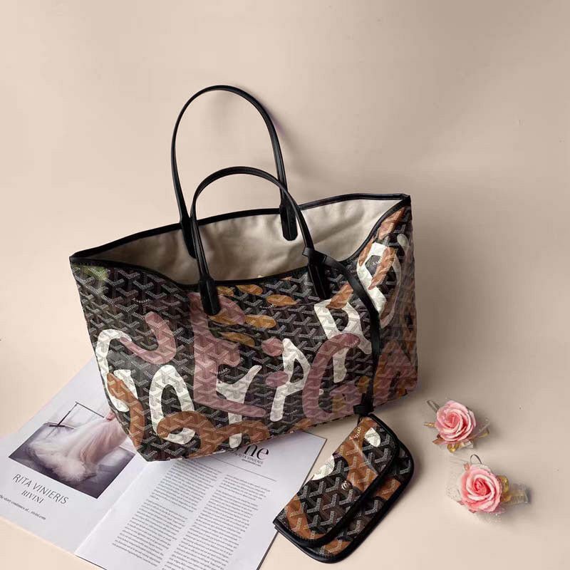 Quality Craftsmanship: Constructed from premium faux Goyardine canvas and leather handles, this bag offers both durability and a luxurious finish.