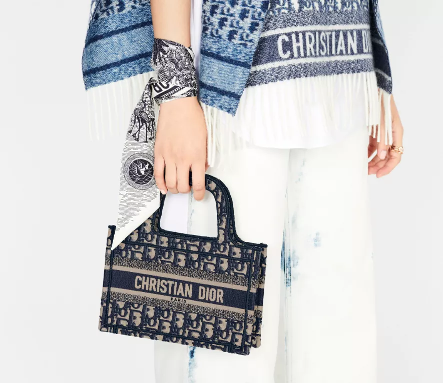 “Dior Book Tote (ディオール ブック トート)”ミニバッグ。ディオールのアーティスティック ディレクター、マリアグラツィアキウリが手がけた、メゾンの美意識を語る上で今や不可欠なスタイル。単行本や日々の必需品を持ち歩くのに最適なミニサイズ。総刺繍を施したキャンバスにロゴマニアパターンとフロントの“Christian Dior”ロゴが映えるデザイン。ディオールのサヴォワールフェールが凝縮されたキャリーオール。小ぶりのレザーアクセサリーと合わせてルックが完成。