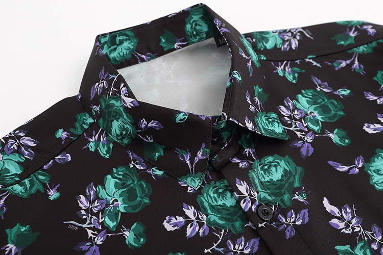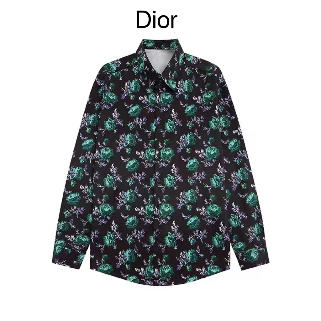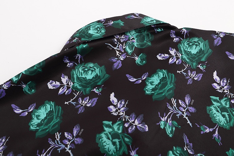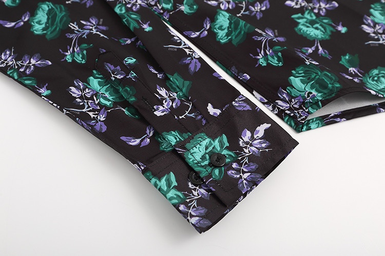 Dior 花卉満天印柄長袖シャツ宝緑色M-3 XL