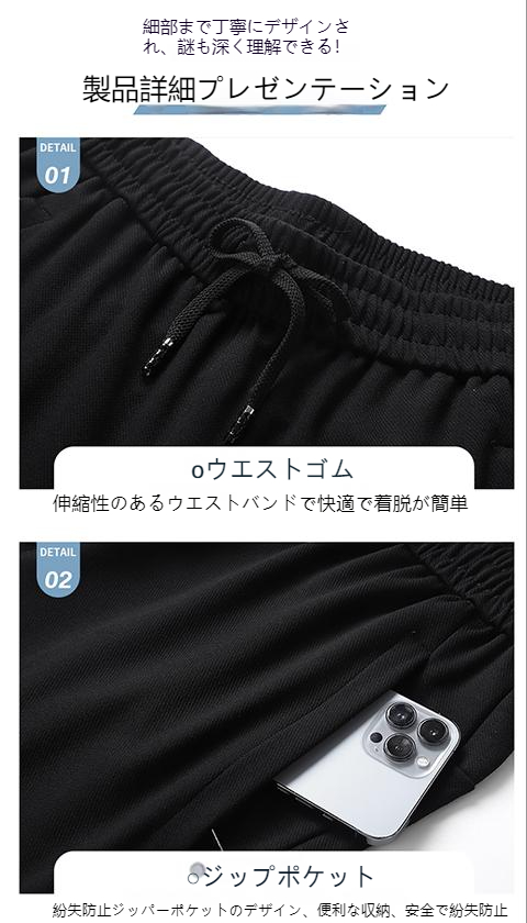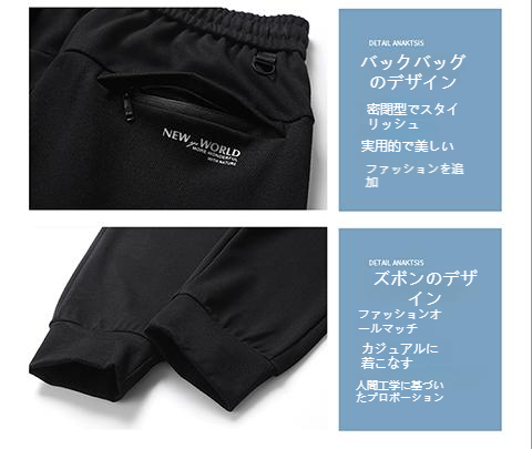 しっかりとした厚手の生地で作られた秋パンツ。ブラックとグレーの2色展開で、サイズもXLから7XLまで揃っています。さらに、3つのジップポケットが付いているので、大切な物を安全に収納することができます。